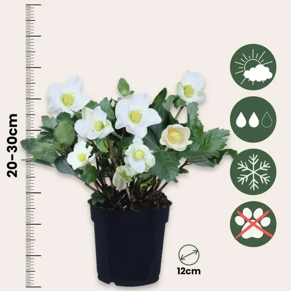 De planten hebben bij levering een hoogte van 20-30cm, gemeten inclusief de kwekerspot. De planten worden geleverd in een kwekerspot met een diameter van 12cm.