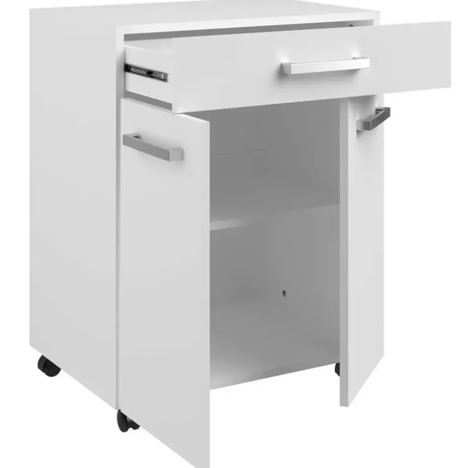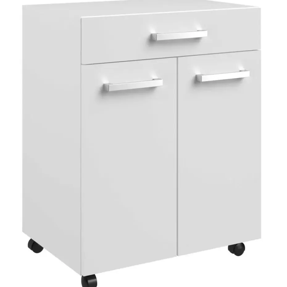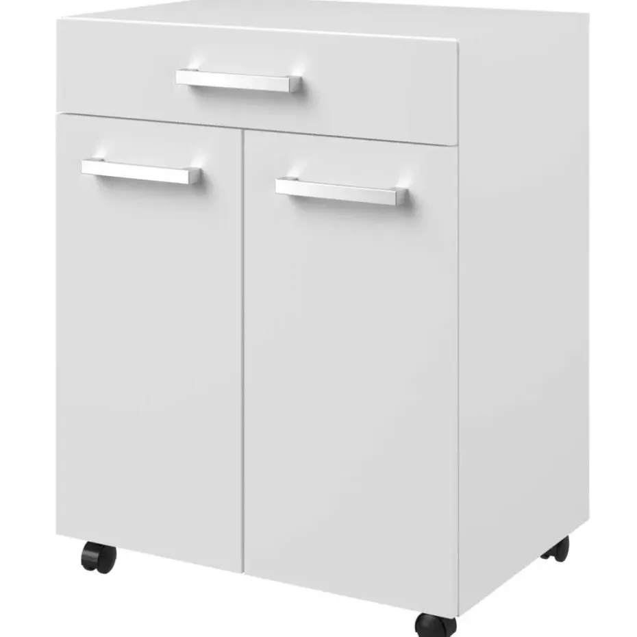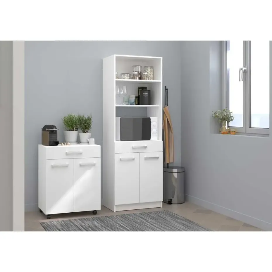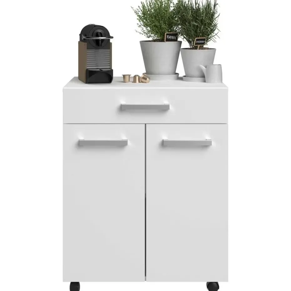 Met de tijdloze collectie Unya creëer je probleemloos meer opbergruimte in de berging, keuken of badkamer. De meubels zijn gemaakt uit spaanplaat met afwerking in melamine. Dit keukenkastje is uitgerust met twee deuren, waarachter je allerlei keukenspullen netjes en uit het zicht kan opbergen. In de opberglade heb je ook plaats voor allerlei kleine spullen en bestek. Dankzij de wieltjes kan je het kastje makkelijk verplaatsen waar je extra opberg- of werkruimte nodig hebt. Ontdek alle mogelijkheden die de reeks Unya biedt op onze website.