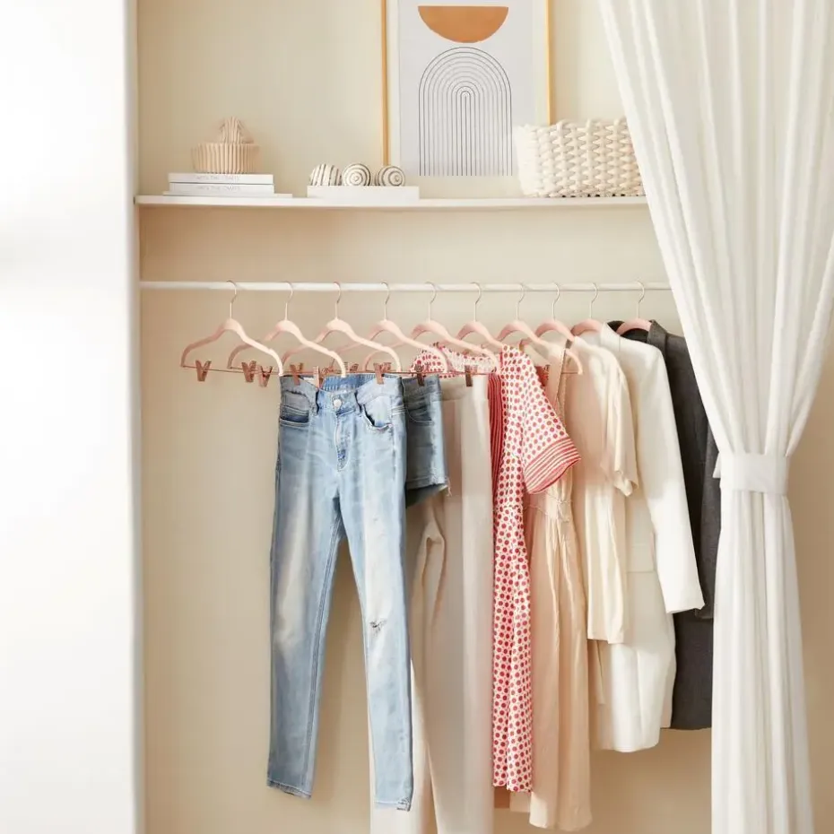 Met deze elegante set van 20 kledinghangers hang je gemakkelijk al je kleding op. Fluwelen hangers hebben een antislipoppervlak, inkepingen en schoudercontouren om de vorm van je kleding te behouden. Ze zijn ook voorzien van 2 verstelbare clips voor broeken en rokken. Door hun roze kleur zijn ze een mooie toevoeging aan iedere kast.
