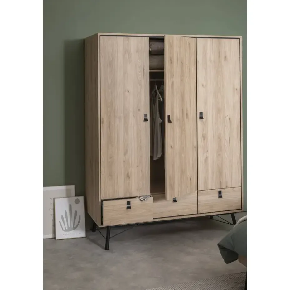 Kleerkast Kansas 3-deurs is een praktische kleerkast met veel opbergruimte. De linnenkast heeft een afmeting van 200x150x60 cm (hxbxd) en heeft 3 openslaande deuren.