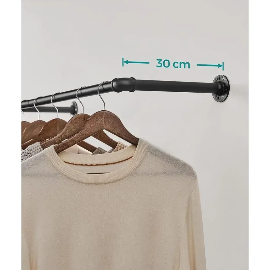 Met een afstand van 30 cm tussen de muur en de kledingstang kunt u vrijwel elke soort kleerhanger gebruiken. Dit voorkomt dat uw kleding tegen de muur botst, wat ideaal is voor het behoud van uw favoriete outfits.