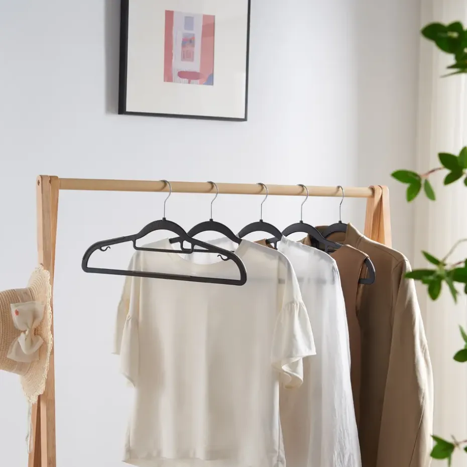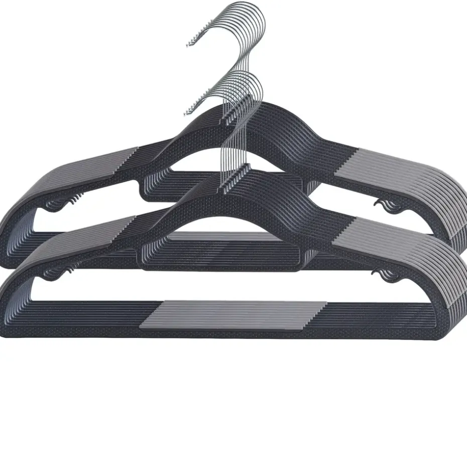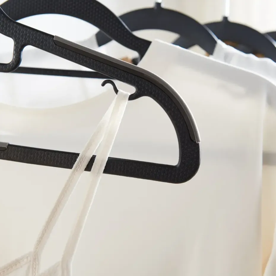 Heb je ook zoveel kleren? En kan je dus wel wat extra kledinghangers gebruiken? Kies dan voor deze zwart kunststof kledinghangers! De rubberen antislipstukken zorgen voor effectieve grip waardoor jouw kleren niet van de hangers kunnen afglijden. Super handig, toch? De kledinghangers zijn bovendien vrij dun waardoor ze weinig ruimte in beslag nemen. Ideaal voor als je nog wat extra kleren wil kopen…