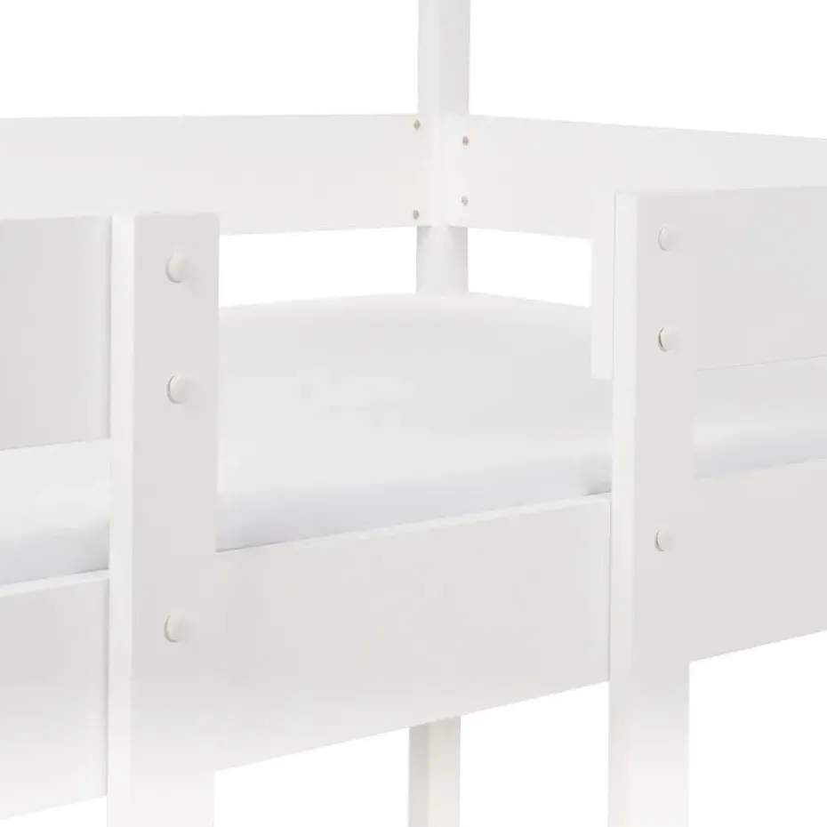 Extra informatie: Kinderen jonger dan 6 jaar mogen het bovenste bed niet gebruiken. Gebruik altijd een ladder bij het betreden en verlaten van het bovenste bed. Zorg ervoor dat de bovenste matras niet boven de lijn komt die op het uiteinde van het frame gemarkeerd is. Door het ontwerp van het stapelbed vereist het bovenste bed een matras met een laag profiel (maximaal 10 cm) voor veiligheid en comfort. Voor het onderste bed wordt een matrashoogte van ongeveer 16 cm aanbevolen. Hout is een natuurproduct. Kleur- en structuurverschillen, nerven, knoesten, barsten en andere natuurkenmerken zijn een bewijs van echtheid en geen fouten die recht geven op vervanging