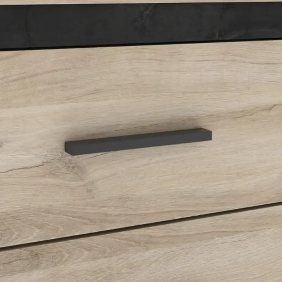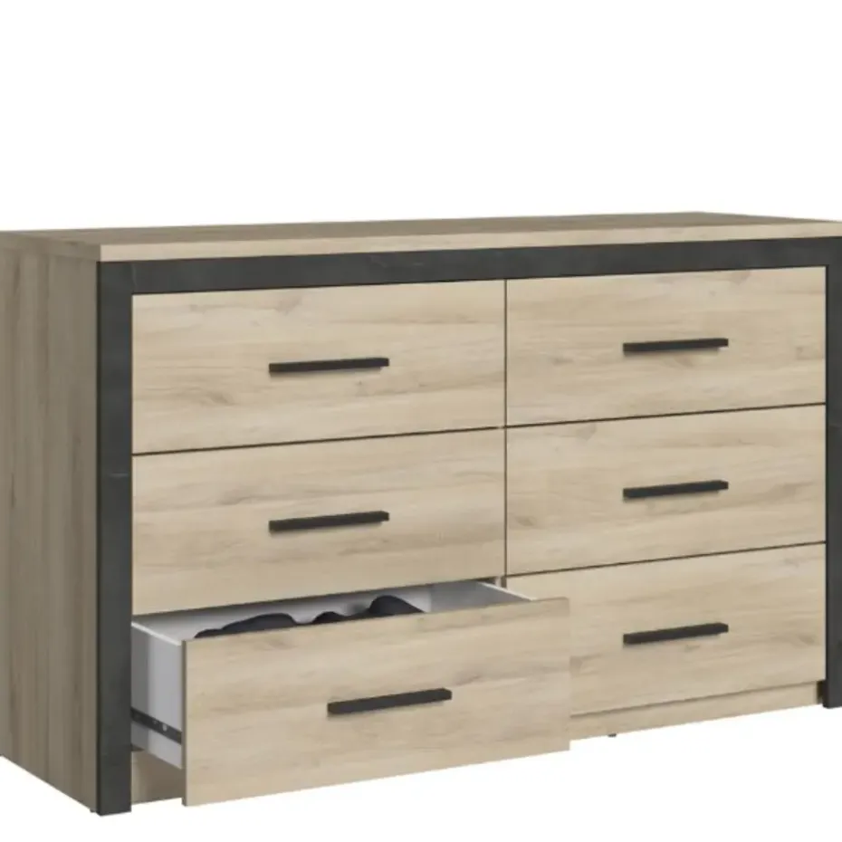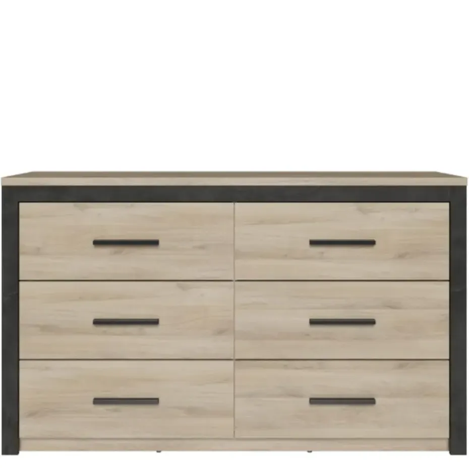 Deze ladekast zorgt dankzij zijn lichte Kronberg eikdecor voor veel lichtinval in de ruimte en de ruwe uitstraling van het Sidewalk zwart geeft het meubel een industriële afwerking. Voeg daar nog eens de matzwarte handgrepen aan toe en u hebt een pareltje! Deze kast biedt met zijn 6 lades een ruime hoeveelheid aan opbergmogelijkheden voor uw kousen en ondergoed. Combineer met de andere meubels uit de Collins-collectie en stel zo uw eigen slaapkamer samen! Schroeven en pluggen voor wandmontage zijn niet inbegrepen.