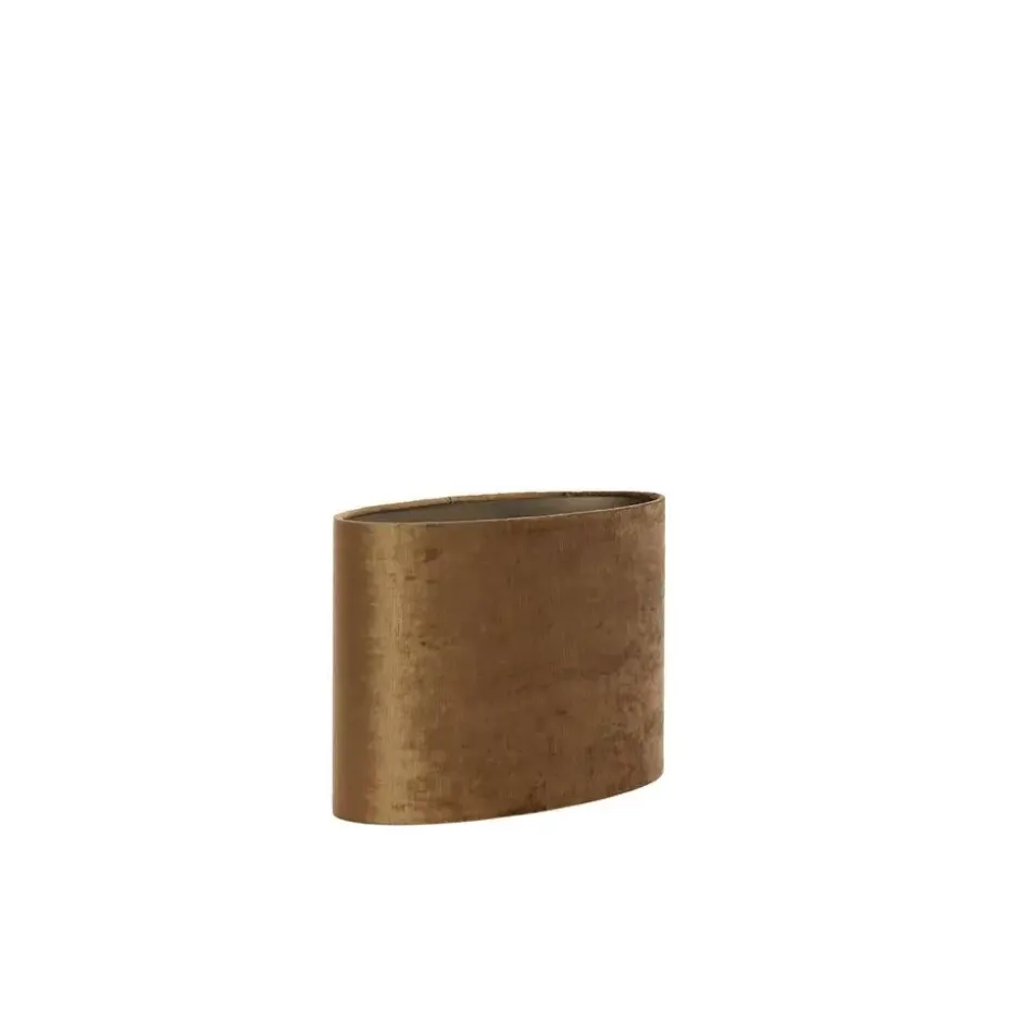 De Gemstone lampenkap in bronskleurig velvet is de perfecte combinatie van luxe en warmte. Met zijn ovale vorm en afmetingen van 38×17,5×19 cm biedt deze kap een elegante uitstraling die direct sfeer brengt. De zachte fluwelen stof vangt het licht prachtig, waardoor een warme gloed ontstaat die ideaal is voor een hotel chique, retro of klassiek modern interieur. De bronskleur geeft diepte en karakter aan de ruimte, terwijl de strakke vorm zorgt voor een moderne balans. Combineer met een lampvoet in glas, keramiek of messing voor een compleet geheel. De Gemstone bronze is niet alleen functioneel, maar ook een stijlvol designaccent dat klasse en warmte toevoegt aan elke ruimte.