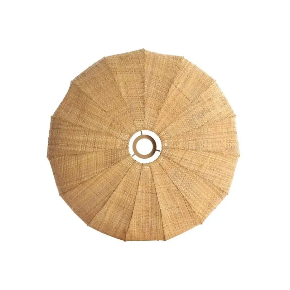 Lampenkap Rafika heeft een ovalen vorm en is gemaakt van raffia materiaal. Dankzij de combinatie van de vorm met het materiaal ontstaat er een unieke bohemian look. De kap heeft een diameter van 50 centimeter en is 21 centimeter hoog.