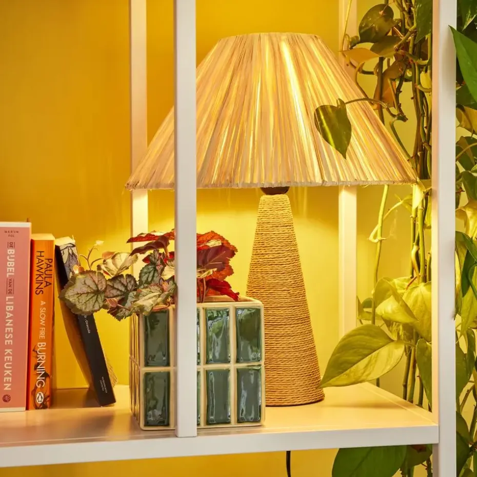 Deze cilinder vormige lampenkap is een aanvulling op ieders interieur. De lampenkap heeft een naturel kleur en is gemaakt van raffia. Dit zorgt voor een warme en natuurlijke uitstraling. Combineer deze lampenkap met een mooie lampvoet en lichtbron. Zo creëer je direct sfeervolle verlichting in je huis. Kap Rowen heeft een afmeting van Ø35×18,5 cm en is niet licht doorlatend. Deze lampenkap is geschikt voor een grote fitting (E27-fitting). Of kan gebruikt worden voor een E14 fitting, mits er een verkleinring op zit.