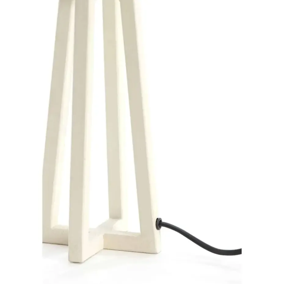 De Miley vloerlamp in crème heeft een unieke gekruiste metalen voet. Met afmetingen van 11,5×11,5×31 cm geeft hij een unieke touch aan je woonkamer. De vloerlamp wordt geleverd zonder lampenkap, zodat je de lamp kunt personaliseren met elke kap naar keuze.