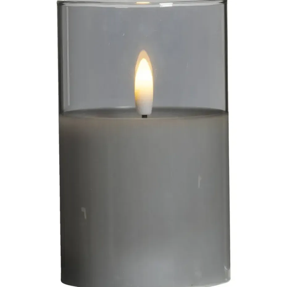 Led kaars in glas is grijs van kleur en heeft een afmeting van 12,5xØ7,5 cm. Met deze LED kaars creëer je in een handomdraai een gezellige sfeer en nog veilig ook! Het flikkerende vlammetje lijkt net echt, mar geeft geen roet af en je kunt deze kaars aan zetten in de buurt van kinderen of huisdieren.
