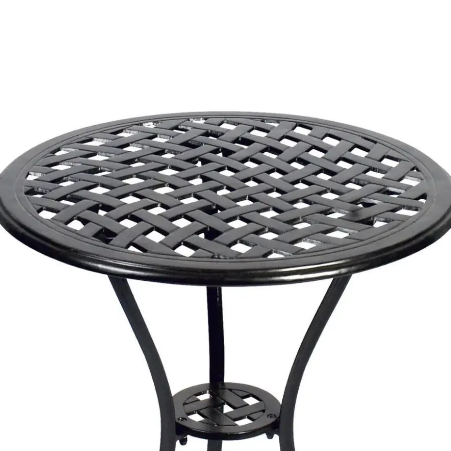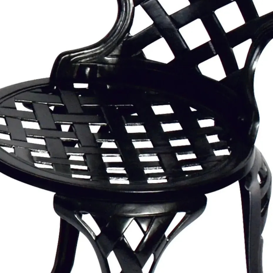 Stijlvol, elegant en klassiek: zo wordt bistroset Leeds Kensington het beste omschreven! Deze prachtige set bestaat uit één bistrotafel en twee bistrostoeltjes en komt uit de collectie van het merk Les. Zowel de stoelen als de tafel zijn uitgevoerd in gegoten aluminium met een neutrale zwarte kleur als afwerking. Opvallend aan het ontwerp van de stoelen zijn de sierlijke vormen en de open structuur. Plaats bistroset Leeds Kensington in de tuinkamer, op het balkon of onder de veranda en geniet van een kop koffie of thee tijdens zonnige dagen. Afmetingen Tafel: Ø60xH66 cm Stoel: B37xD40xH86 cm