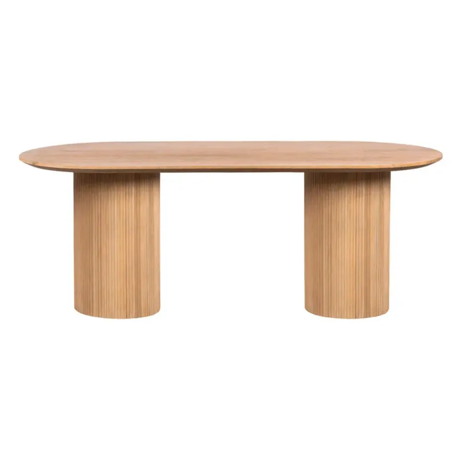 De Lewis & Loft Lynn eettafel combineert natuurlijke schoonheid en functioneel design in één meesterwerk. Met zijn robuuste mangohouten blad en sierlijke ovale vorm is deze eettafel perfect voor stijlvolle diners en gezellige bijeenkomsten. De tafel biedt een ruime opzet van 200×90 cm en is uitgerust met stevige ronde poten, waardoor hij een stabiele basis heeft voor al uw eetmomenten.