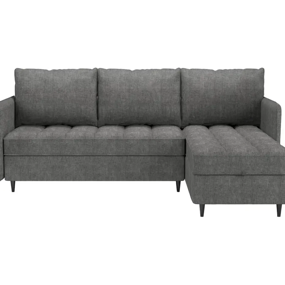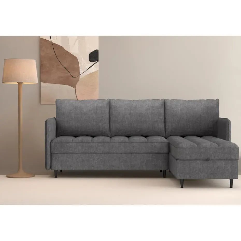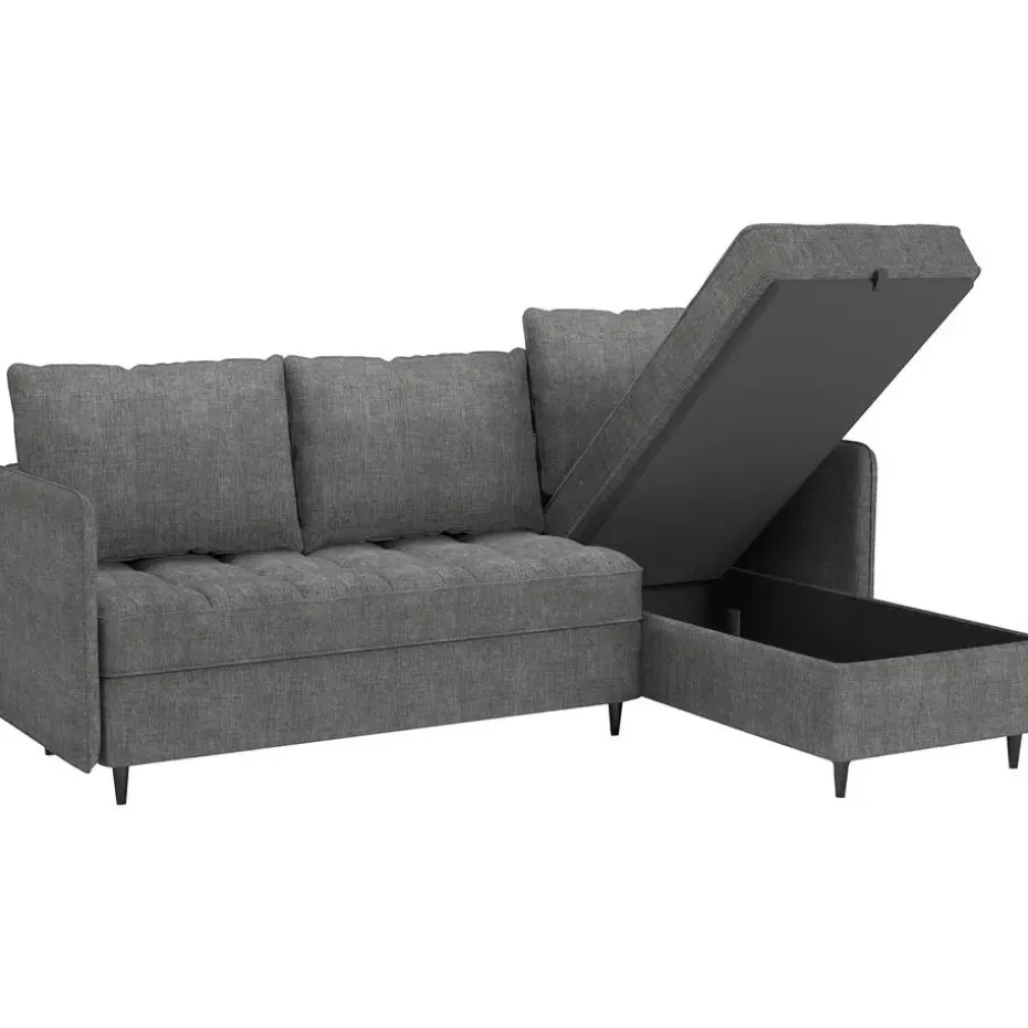 De bank kan ook worden gebruikt als slaapbank, waardoor hij ideaal is voor logés. Het ingebouwde opbergvak onder de chaise longue is perfect om beddengoed, dekens, kussens en andere benodigdheden netjes in op te bergen.