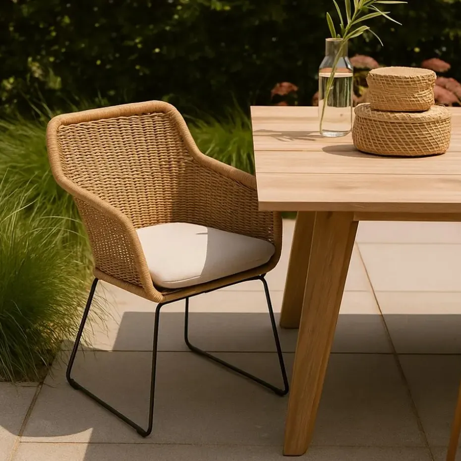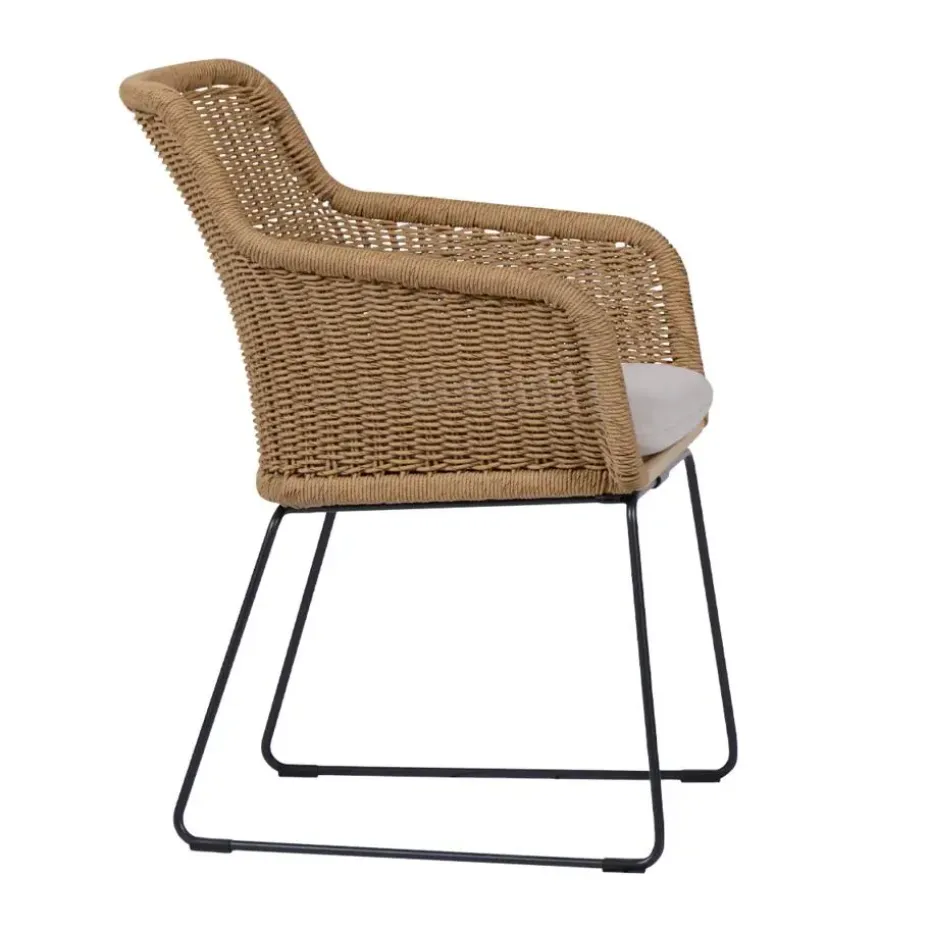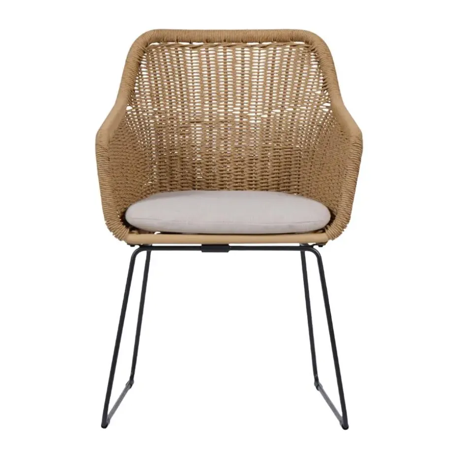 De Loki tuinstoel is gemaakt van polyrattan, een kunststof met de uitstraling van rotan, waardoor het tuinmeubel een bohemian uitstraling heeft en hij erg makkelijk in onderhoud is. Dankzij het comfortabele zitkussen is Loki een fijne stoel om in weg te zakken op een zonnige dag. Verkrijgbaar in zwart en naturel, zodat je altijd een kleur vindt die past bij jouw buitenruimte. Het meegeleverde zitkussen van 5 cm dik biedt extra comfort, perfect voor lange zomeravonden buiten.