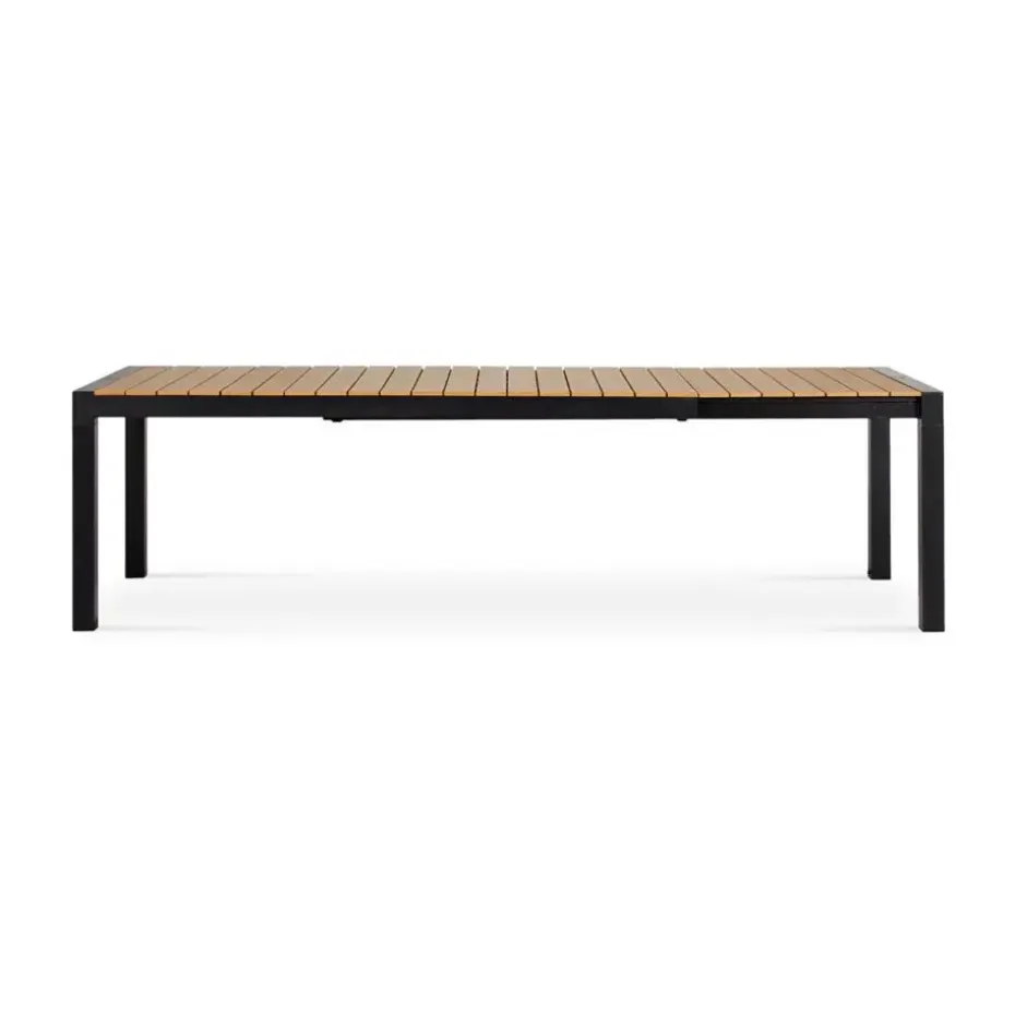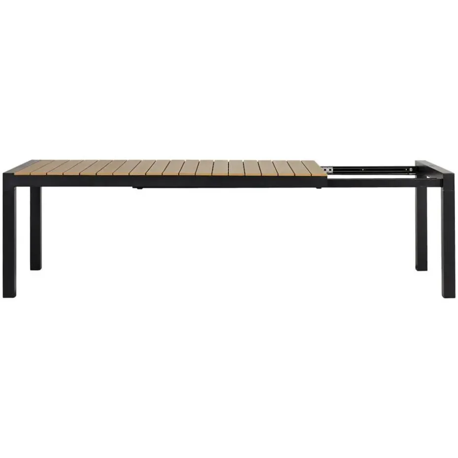 Schuif de tafel uit als je mensen over de vloer hebt, en klap de tafel weer in zodra je iets meer ruimte op het terras wil. De Stef tuintafel heeft een frame van zwart gepoedercoat aluminium en een tafelblad gemaakt van polywood latjes. Polywood is een duurzame kunststof maar heeft de uitstraling van hout, waardoor je een mooie houtlook tafel hebt. De onderkant van het tafelblad is 67 centimeter hoog. Het verlengstuk van de tafel heeft een lengte van 69,5 centimeter waardoor de tafel tot 275 centimeter te verlengen is. Door het uitschuifbare frame kan het verlengstuk aan het uiteinde van de tafel worden bevestigd. Let op: laat glazen niet te lang in de zon staan op een polywood tafel. Hierdoor kan een vergrootglaseffect optreden waardoor er smeltplekken ontstaan op het tafelblad. Ook hete voorwerpen zoals pannen kunnen niet direct op het tafelblad worden geplaatst.