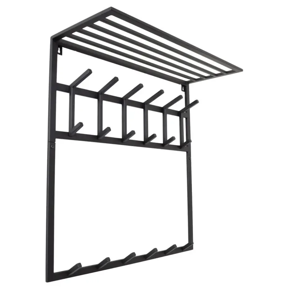 Op zoek naar een kapstok die zowel functioneel als esthetisch aantrekkelijk is? Maak kennis met de LOFT42 Kapstok Jaimy – een meesterwerk van minimalistisch design en hoogwaardig metaalwerk. Met zijn strakke zwarte afwerking en zes dubbele- en 6 enkele haken biedt deze kapstok de perfecte oplossing voor het organiseren van jassen, tassen en nog veel meer.