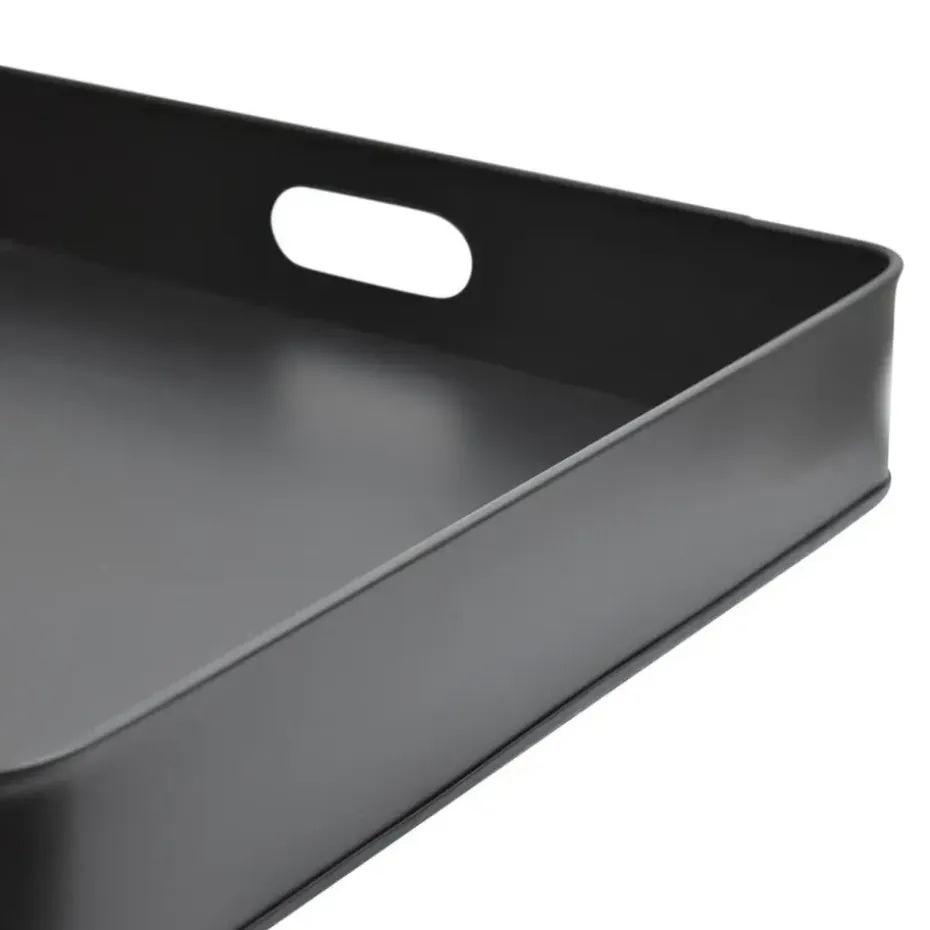 Het LOFT42 Tray Metalen Dienblad is een groot vierkant dienblad en gemaakt vanstevig metaal met een mat zwart poedercoating als afwerking. De gave mat zwarte kleur, maakt het dienblad tot een extra stoer woonaccessoire. In de opstaande rand,zijn twee uitsparingen die als handvat gebruikt kunnen worden.