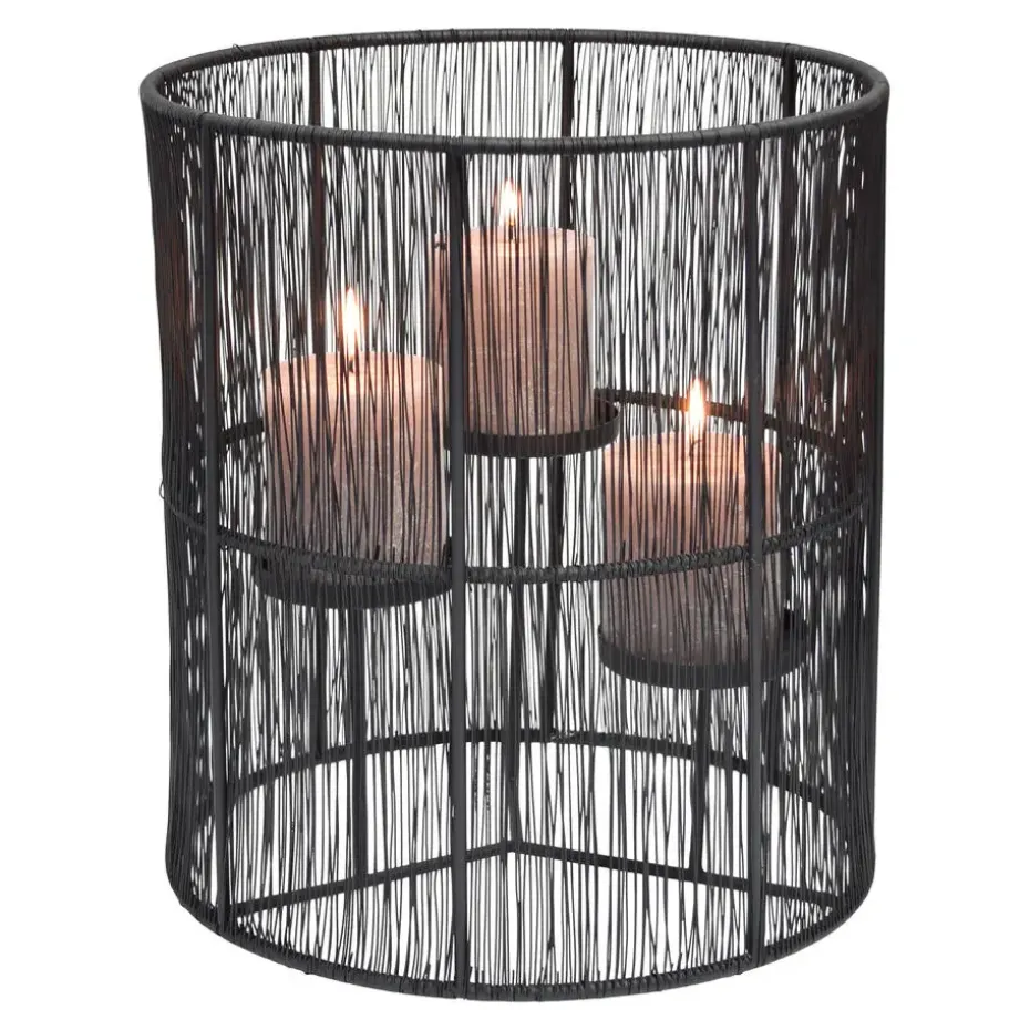 De Wira Kandelaar is een stoere robuuste kandelaar van mat zwart metaal. Je kunt er 3 grote kaarsen of waxinelichten in kwijt! De verschillende hoogtes geven de kandelaar een speels karakter.