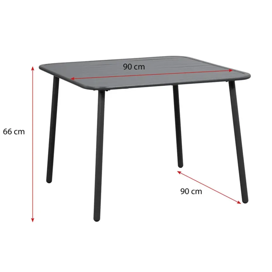 De lounge dining tafel Paris is een aluminium tuintafel. Dat maakt de tafel geschikt om buiten in de tuin te gebruiken. De tafel is 66 cm hoog en 90 cm breed. De poten hebben een diameter van 3,8 cm.