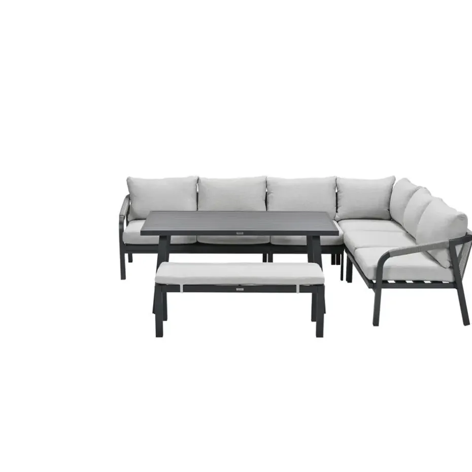 Lounge-diningset Monti – zwart – 7-persoons – aluminium – Garden Impressions