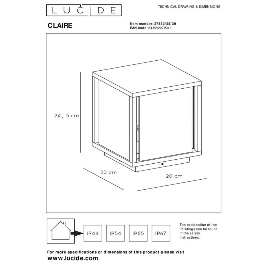 • Afmetingen: L.20 x B.20 x H.24,5 cm