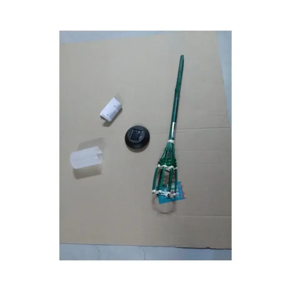 1x Groene buitenlamp/tuinlamp LED solar vlameffect verlichting op bamboe houten steker/grondpin/grondpen, type Bodi. Verlicht het tuinpad/looppad of licht een plantenborder uit met meerdere van deze lampen. De lampen zijn milieuvriendelijk aangezien ze zelfvoorzienend zijn in stroom dankzij de zonnepanelen. U kunt de lamp overal plaatsen en ook weer verplaatsen omdat u geen elektriciteitsdraden hoeft te spannen.