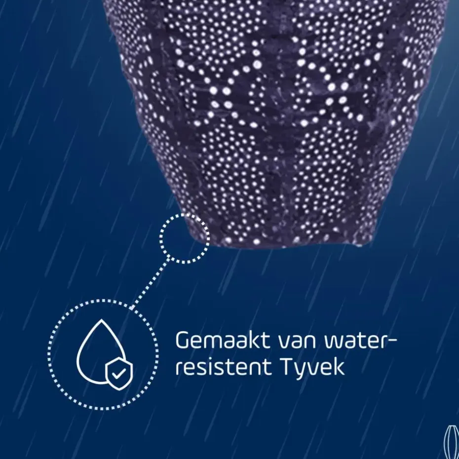 - De Buitenlamp is vervaardigd uit Tyvek, een sterk, weerbestendig en duurzaam 100% recyclebaar materiaal.