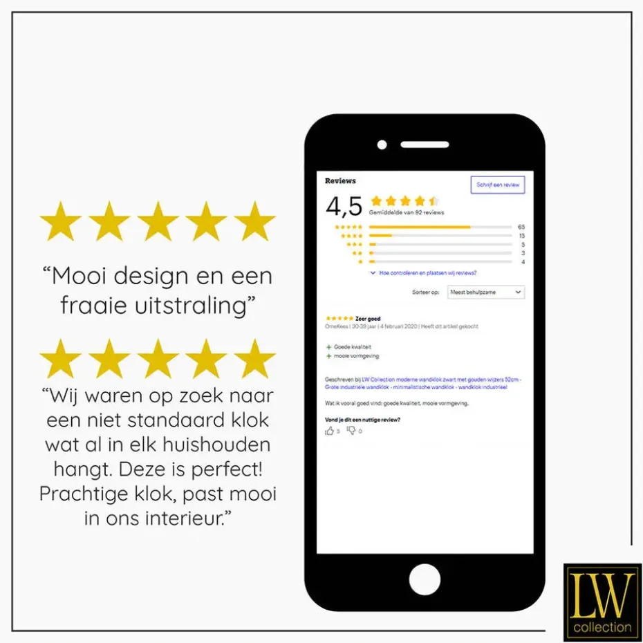 Een grote XL moderne klok is tijdloos en past in vrijwel iedere ruimte. Onze zwarte cijferklok uit de serie Jannah geeft jouw kamer een frisse look. De combinatie van strak en sjiek maakt deze klok bijzonder en uniek. De moderne zwarte klok Jannah hangt bij onze klanten in verschillende ruimtes; woonkamers, keukens, kinderkamers en in de hal. Ben je jouw inrichting over een tijdje zat? Verplaats de klok dan gemakkelijk naar een andere ruimte waar deze net zo goed tot zijn recht komt. Klok Jannah heeft een afmeting van 80 cm en komt uit onze exclusieve lijn LW Collection.