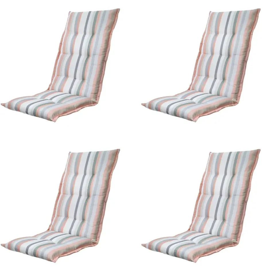 Madison – Tuinstoelkussen Hoge Rug Righe salmone – Ca. 123×50 cm – Set van 4