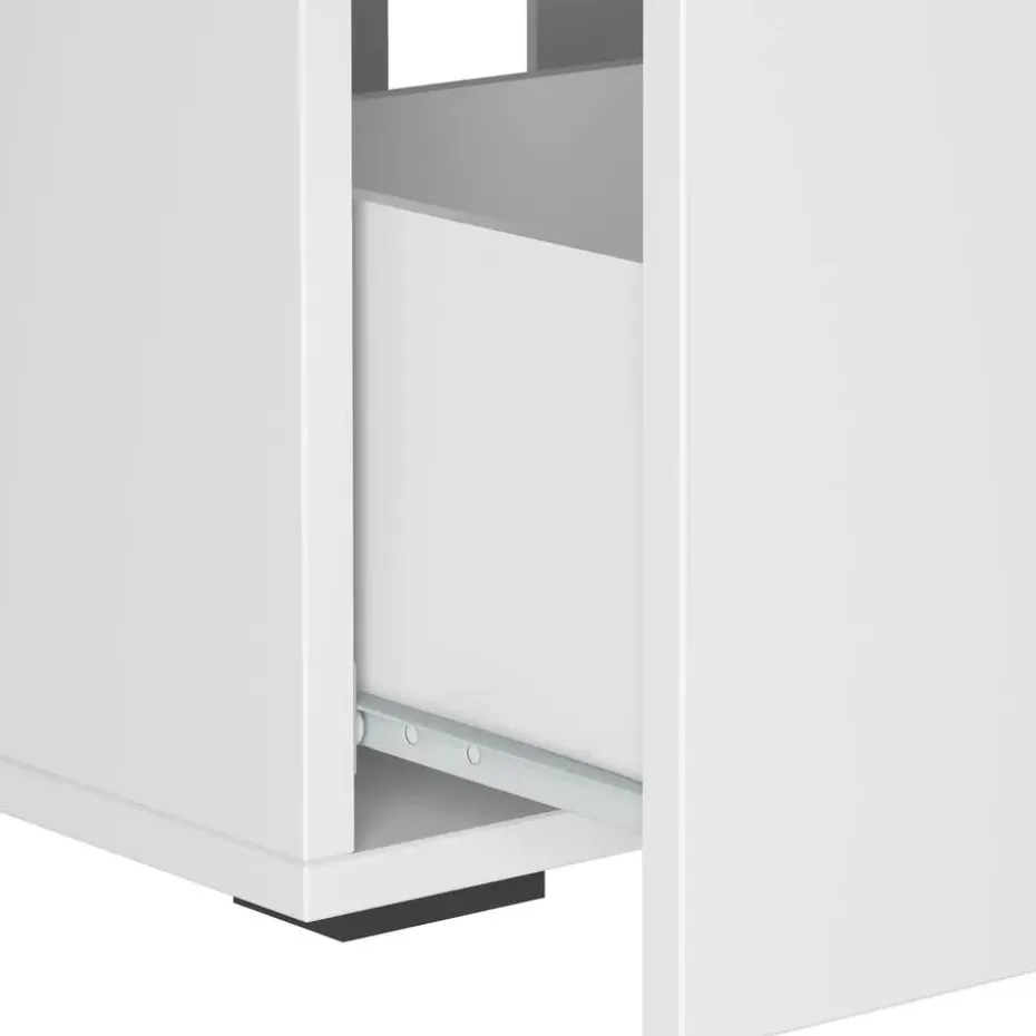 Stabiliteit wordt gegarandeerd door stevige plastic poten van 2 cm hoog. De sifonuitsparing van 7,5 × 22 cm zorgt voor een eenvoudige installatie. Met één klep en één lade biedt de kast praktische opbergruimte voor dagelijkse benodigdheden. Het onderhoudsvriendelijke oppervlak maakt schoonmaken eenvoudig en helpt een nette, verzorgde uitstraling te behouden. Een praktische toevoeging die gemak combineert met modern design.