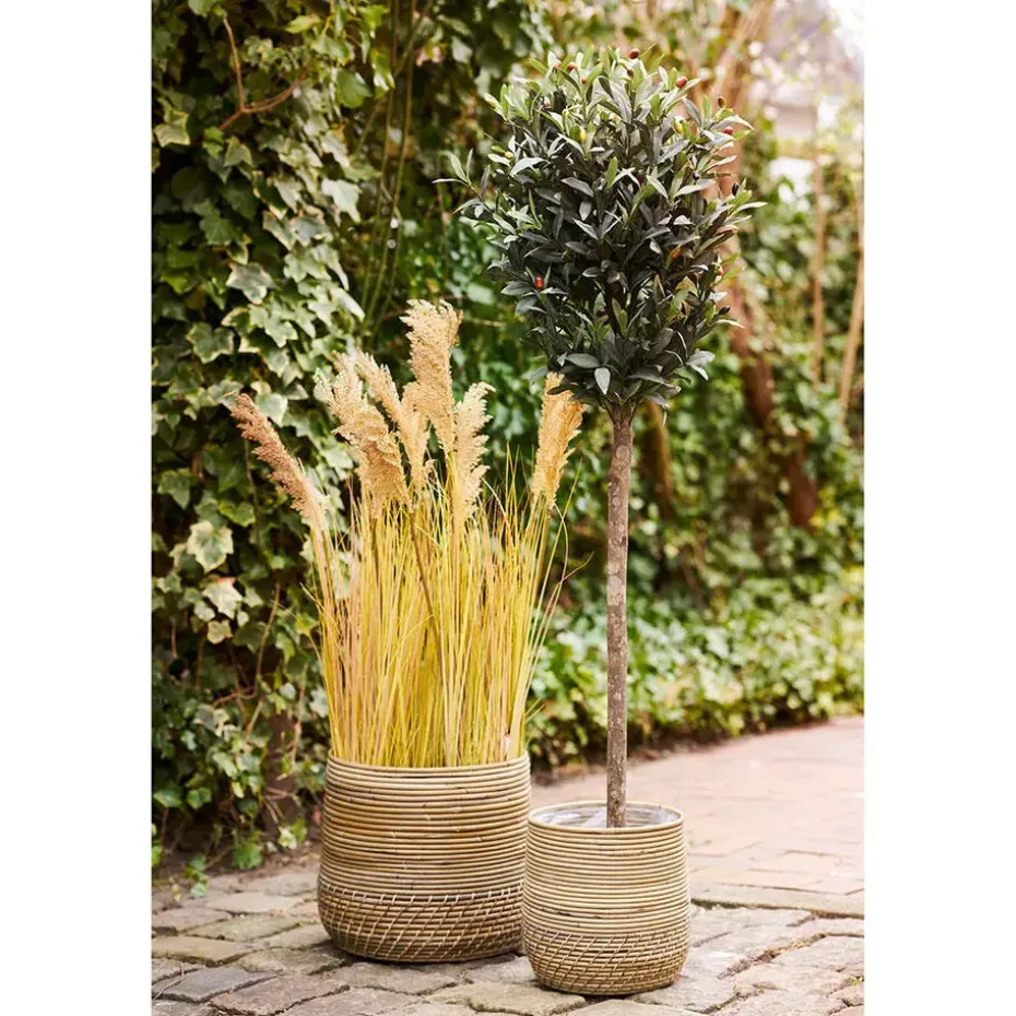 Materiaal: Deze manden zijn gemaakt van rotan, een materiaal dat bekend staat om zijn flexibiliteit en sterkte. Rotan is een natuurlijk materiaal dat niet alleen duurzaam is, maar ook een warme en uitnodigende uitstraling heeft. Het gebruik van rotan maakt deze manden licht van gewicht en gemakkelijk te verplaatsen, terwijl ze toch stevig en robuust blijven.