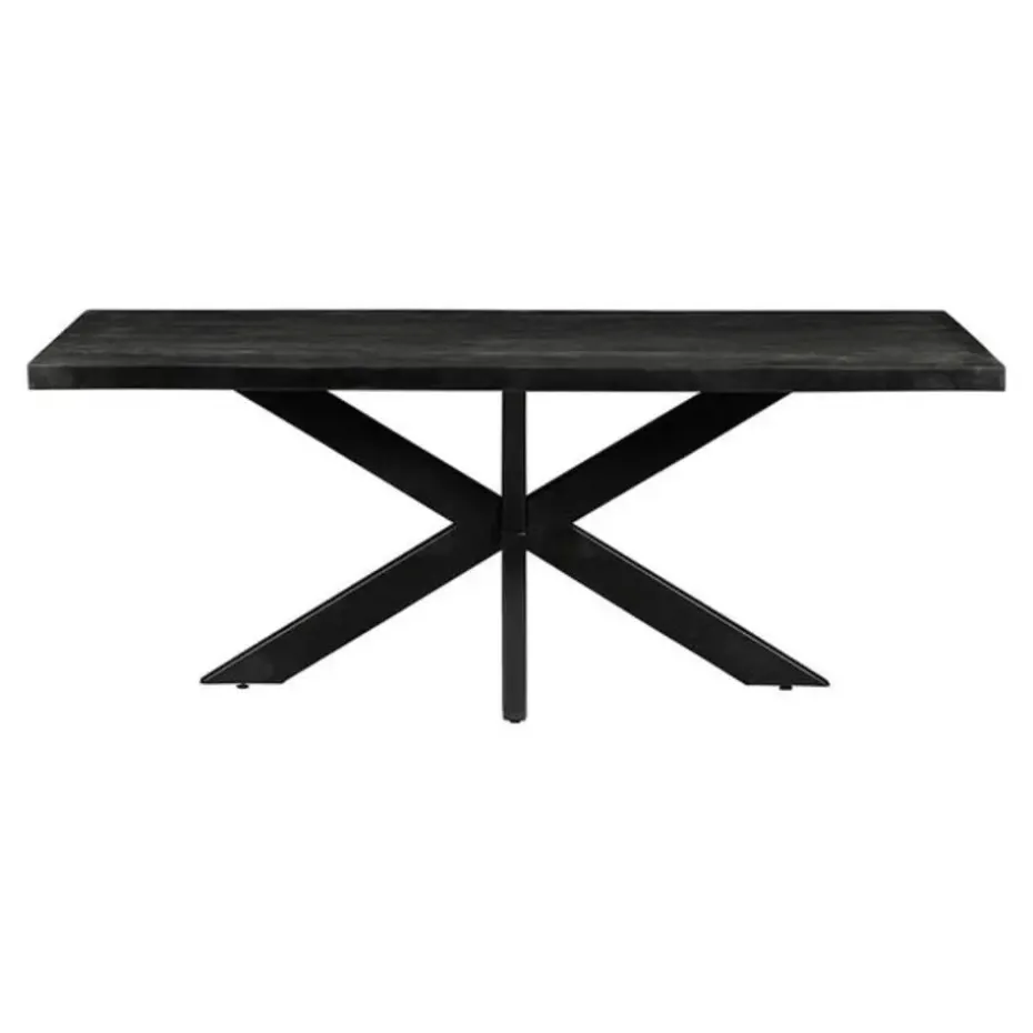 Het mangohout is eerst gezandstraald, waarna het behandeld wordt met zwarte verfbeits en tenslotte wordt afgewerkt met een donkere, natuurlijke bijenwas om het hout te beschermen tegen vocht, vuiligheid en kringen. De matrixpoten zijn gemaakt van zwart gepoedercoat metaal.