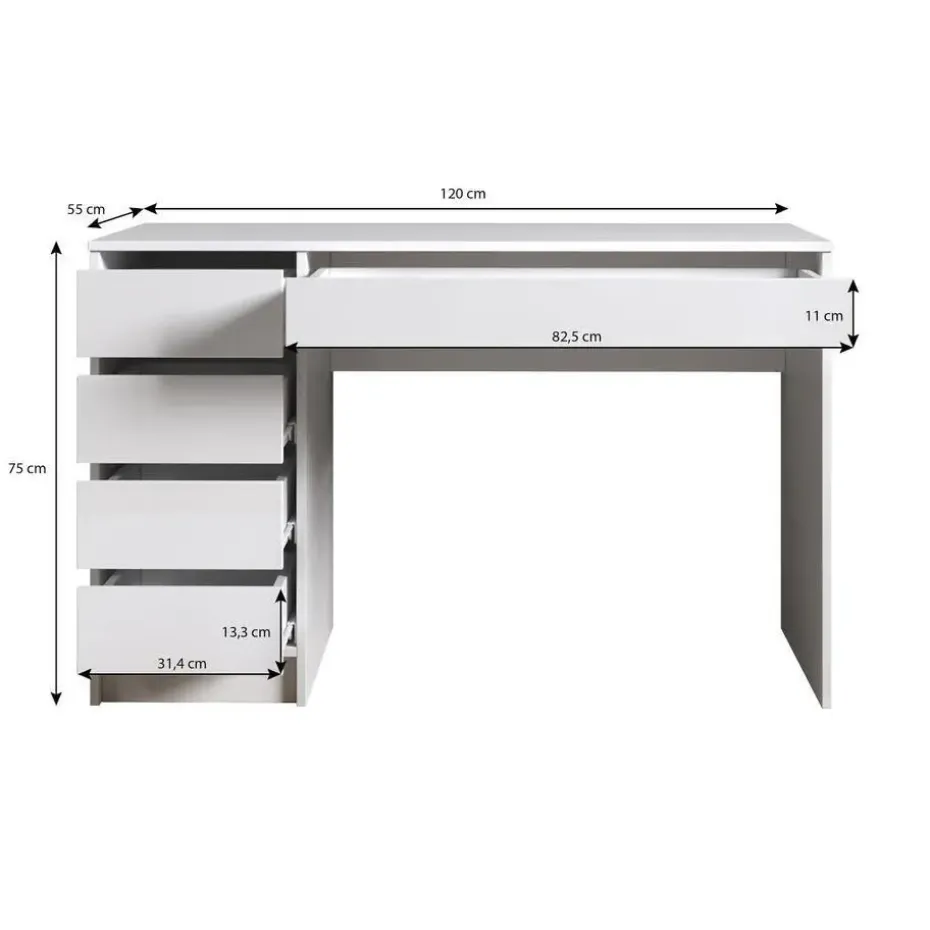 Bureau Avio beschikt over 5 greeploze lades. Deze zijn via de bovenzijde te openen. De voorkant van de lades zijn van hoogglans. Het meubel wordt ongemonteerd geleverd. Je dient het dus met behulp van de bijgeleverde handleiding zelf in elkaar te zetten.