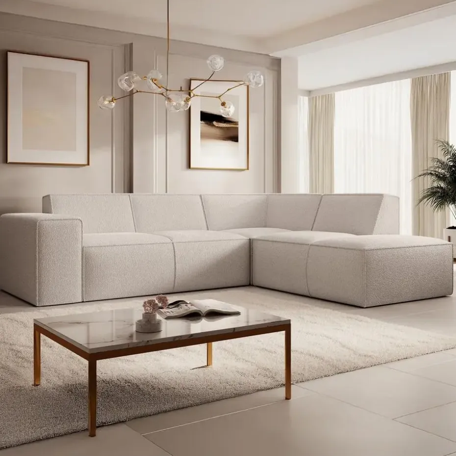 Hoekbank Monet is een hoekbank gemaakt van teddystof. Het is een L-vormige hoekbank geschikt voor 4 tot 5 personen. Beschikt over vaste zit- en rugkussens en een naar buiten gestikte naad op de randen. Het meubel wordt ongemonteerd geleverd. Je dient het dus met behulp van de bijgeleverde handleiding zelf in elkaar te zetten.
