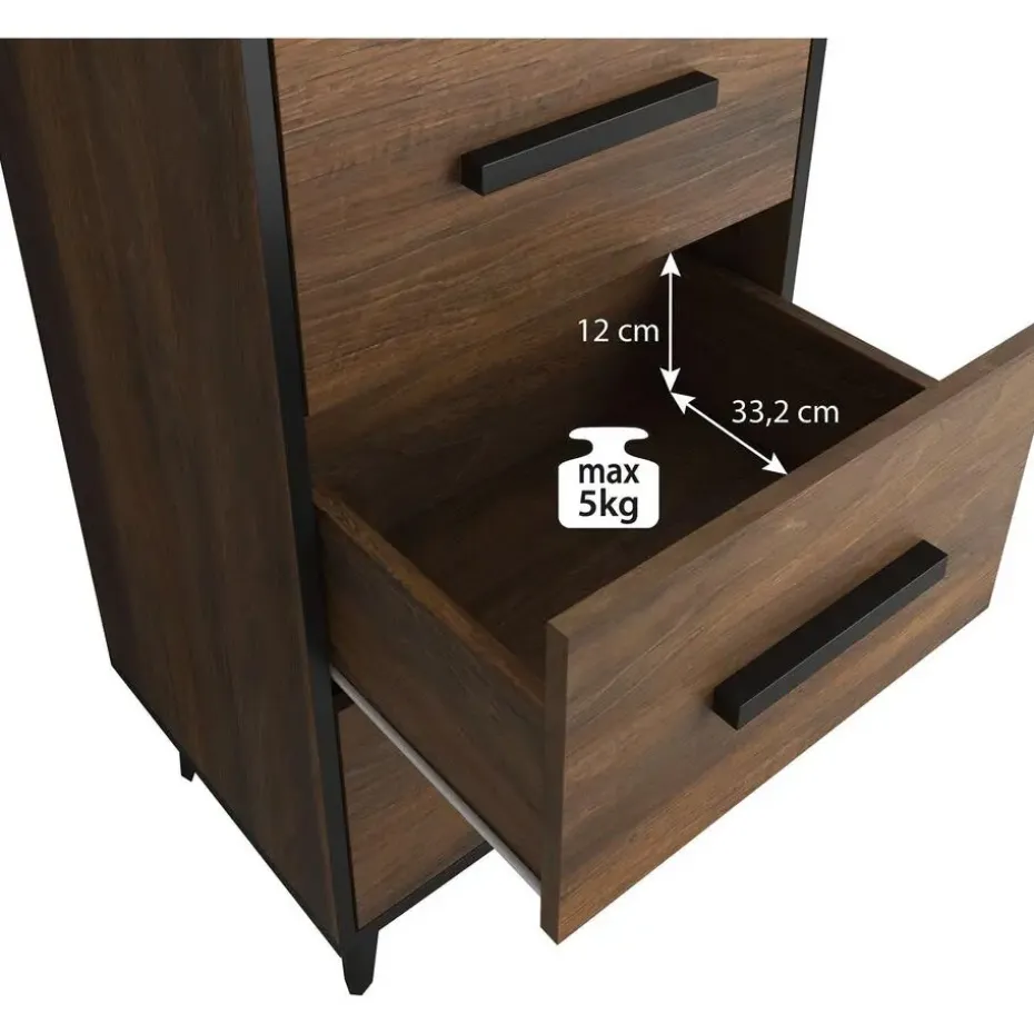 Ladekast Frey beschikt over 3 lades die te openen zijn met zwarte handgrepen. De kast staat op metalen poten. Het meubel wordt ongemonteerd geleverd. Je dient het dus met behulp van de bijgeleverde handleiding zelf in elkaar te zetten.