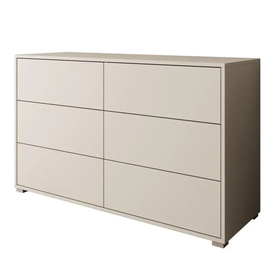 Ladekast Gideon beschikt over 6 lades die openen met het push to open systeem. De Gideon heeft een moderne uitstraling en is uitgevoerd in de kleur beige met zilverkleurige poten. Deze poten zijn gemaakt van kunststof. Het meubel wordt ongemonteerd geleverd. Je dient het dus met behulp van de bijgeleverde handleiding zelf in elkaar te zetten.