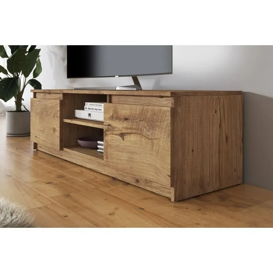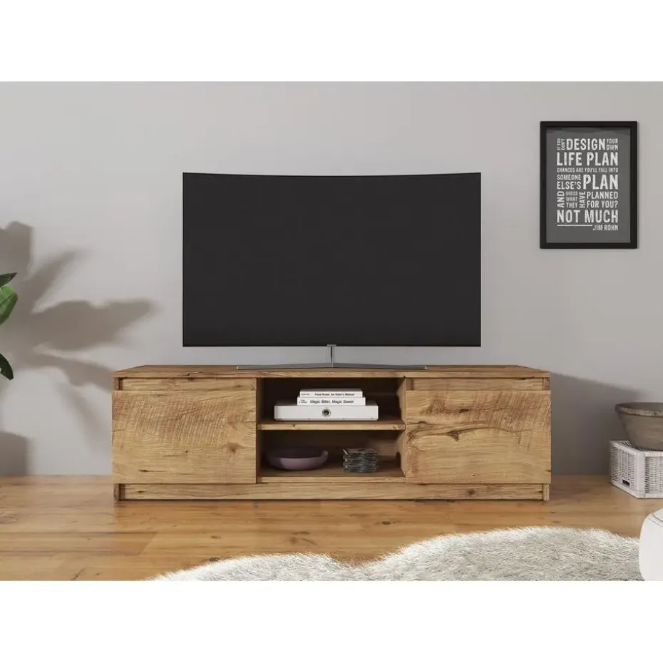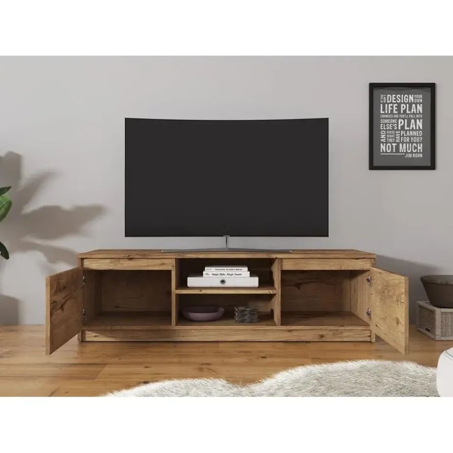 TV-Meubel Diaz beschikt over 2 greeploze deuren. Deze openen via de bovenkant. In het midden zitten 2 open vakken. Het meubel wordt ongemonteerd geleverd. Je dient het dus met behulp van de bijgeleverde handleiding zelf in elkaar te zetten.