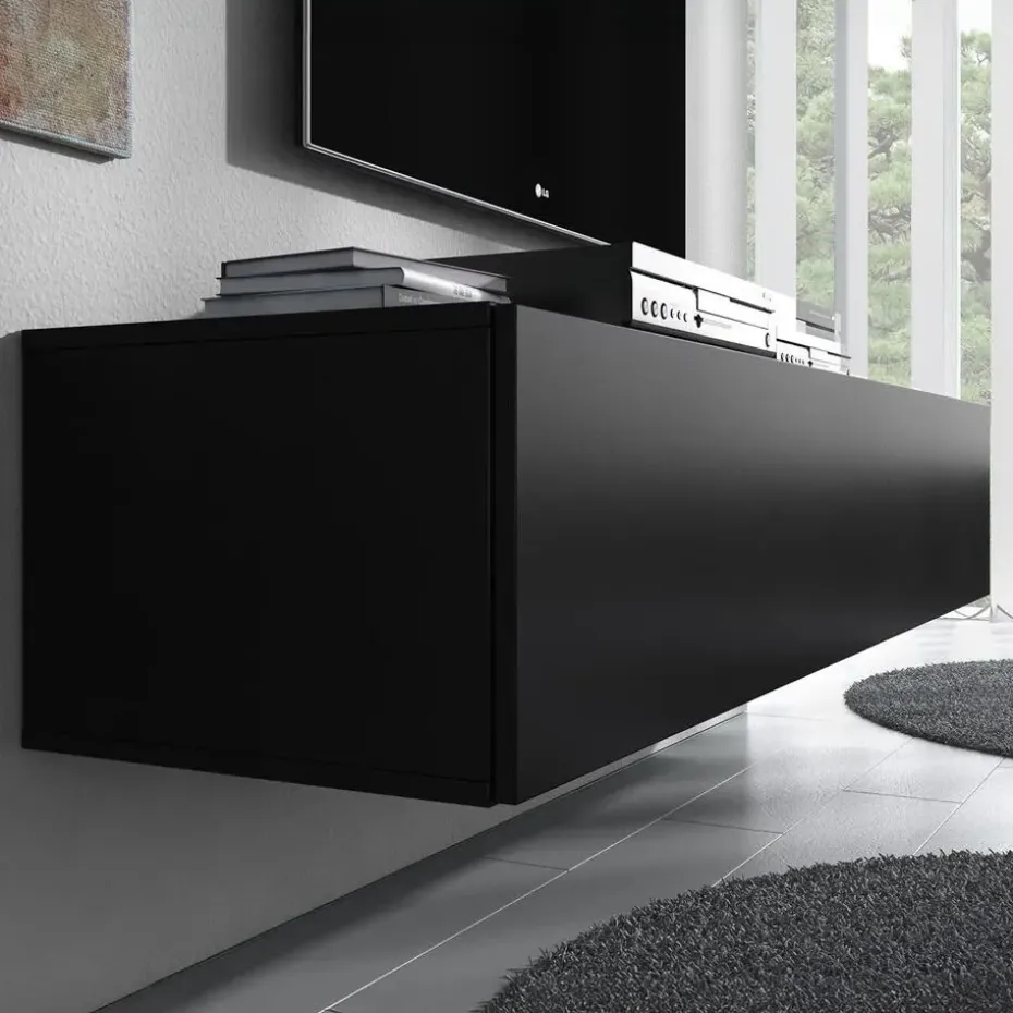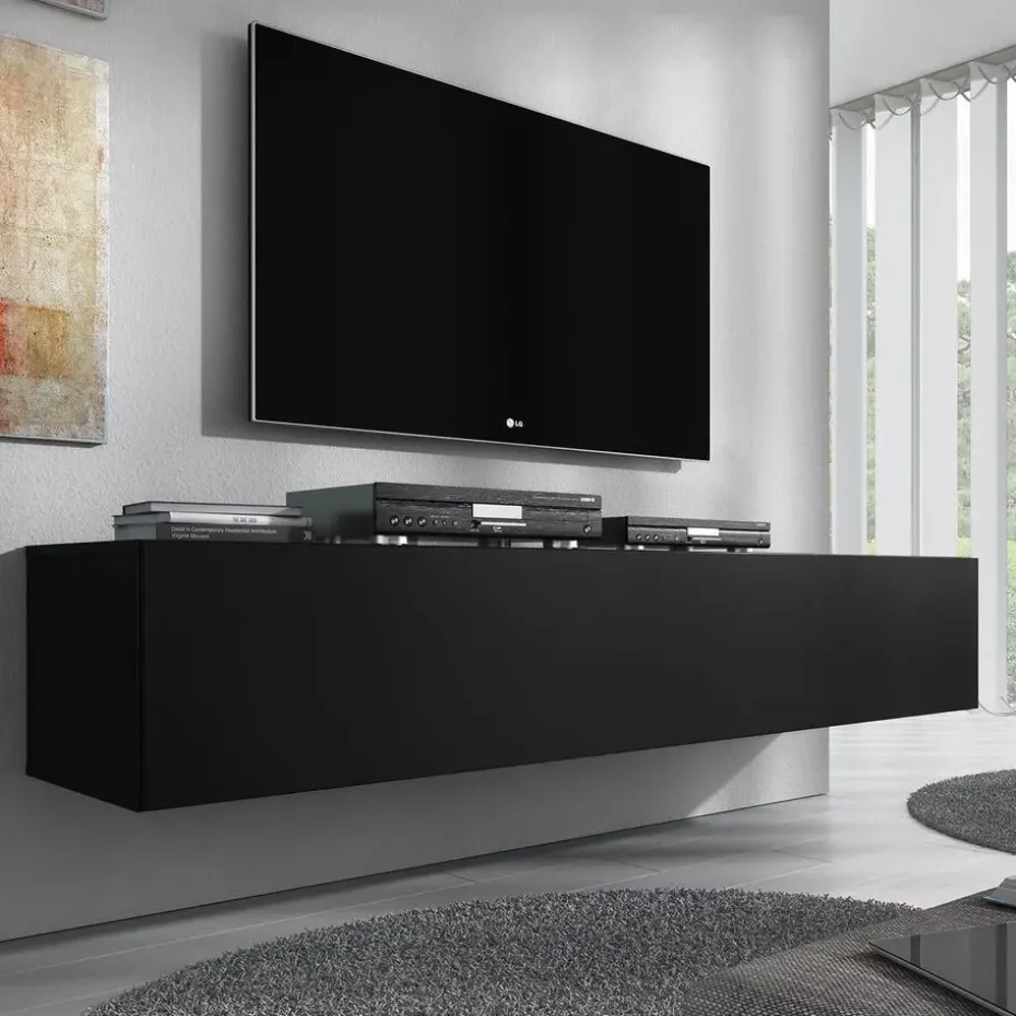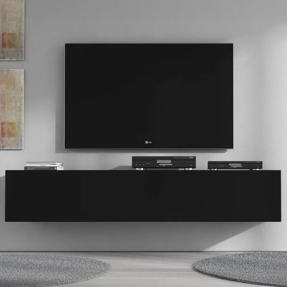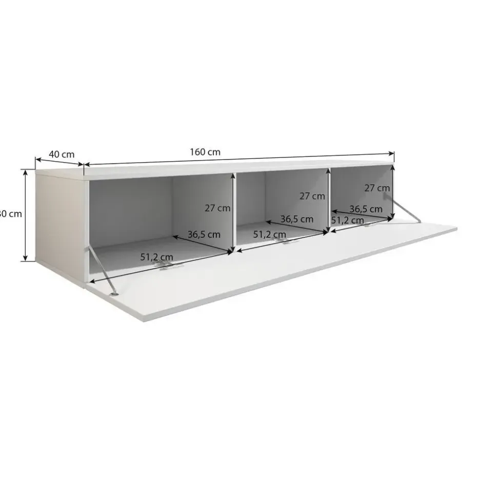 TV-Meubel Flame heeft 1 greeploze klep. Deze open met een push-to-open systeem. Hierachter zitten 3 opbergvakken. De Flame is een zwevend model. Het meubel wordt ongemonteerd geleverd. Je dient het dus met behulp van de bijgeleverde handleiding zelf in elkaar te zetten.