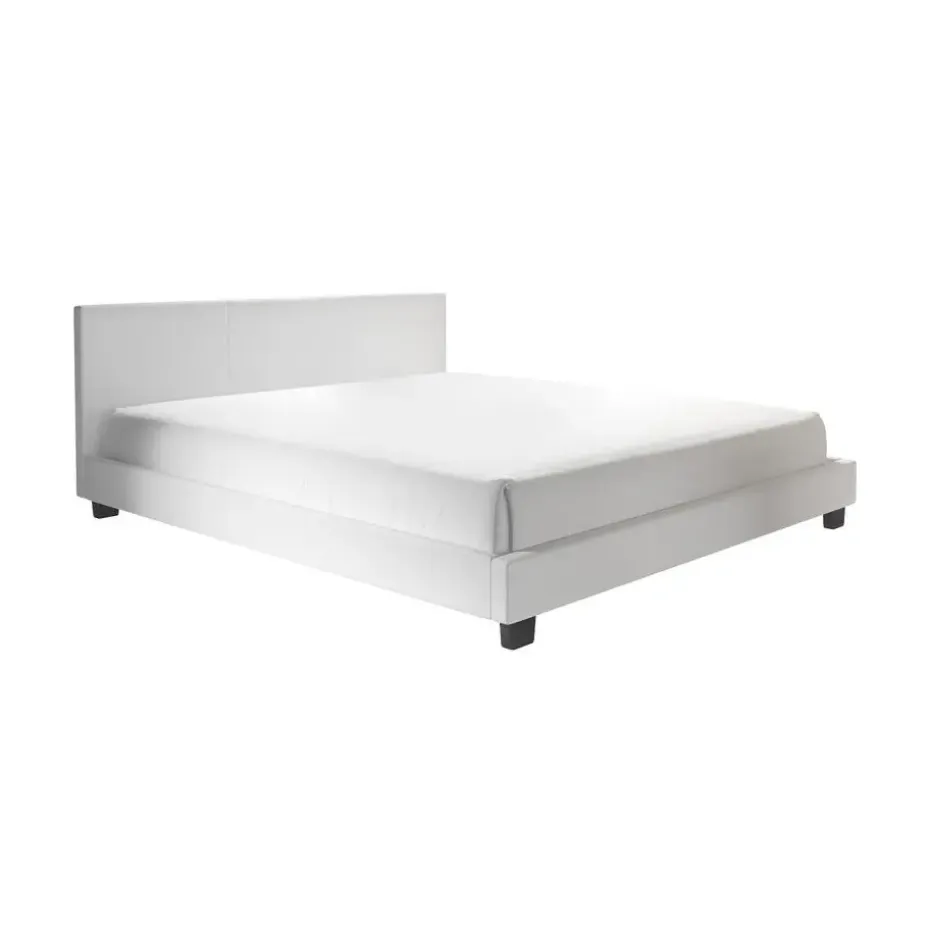 Tweepersoonsbed George is gemaakt van stevig kunstleer in witte kleur. Het bed wordt met lattenbodem geleverd en is geschikt voor matrasmaat 140×200 cm. Inclusief hoofd- en voetenbord. Afmetingen: 149x210x78 cm. Het meubel wordt ongemonteerd geleverd. Je dient het dus met behulp van de bijgeleverde handleiding zelf in elkaar te zetten.