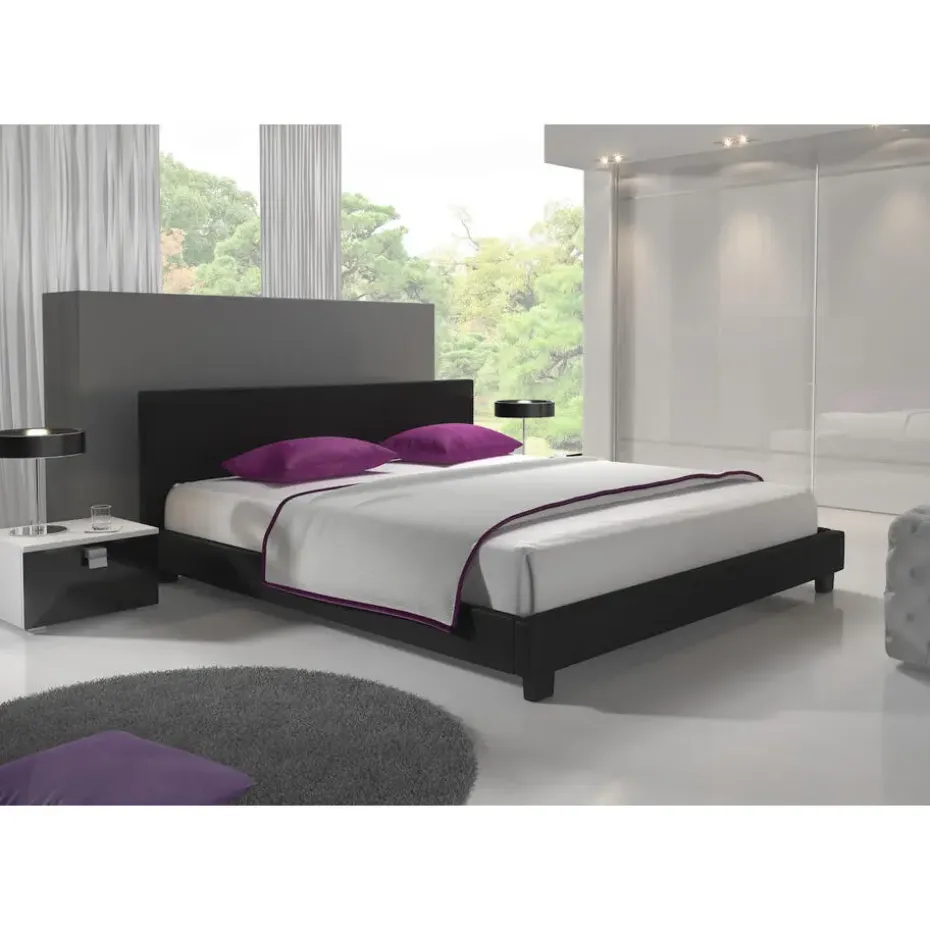 Tweepersoonsbed George is gemaakt van stevig kunstleer in zwarte kleur. Het bed wordt met lattenbodem geleverd en is geschikt voor matrasmaat 140×200 cm. Inclusief hoofd- en voetenbord. Afmetingen: 149x210x78 cm. Het meubel wordt ongemonteerd geleverd. Je dient het dus met behulp van de bijgeleverde handleiding zelf in elkaar te zetten.