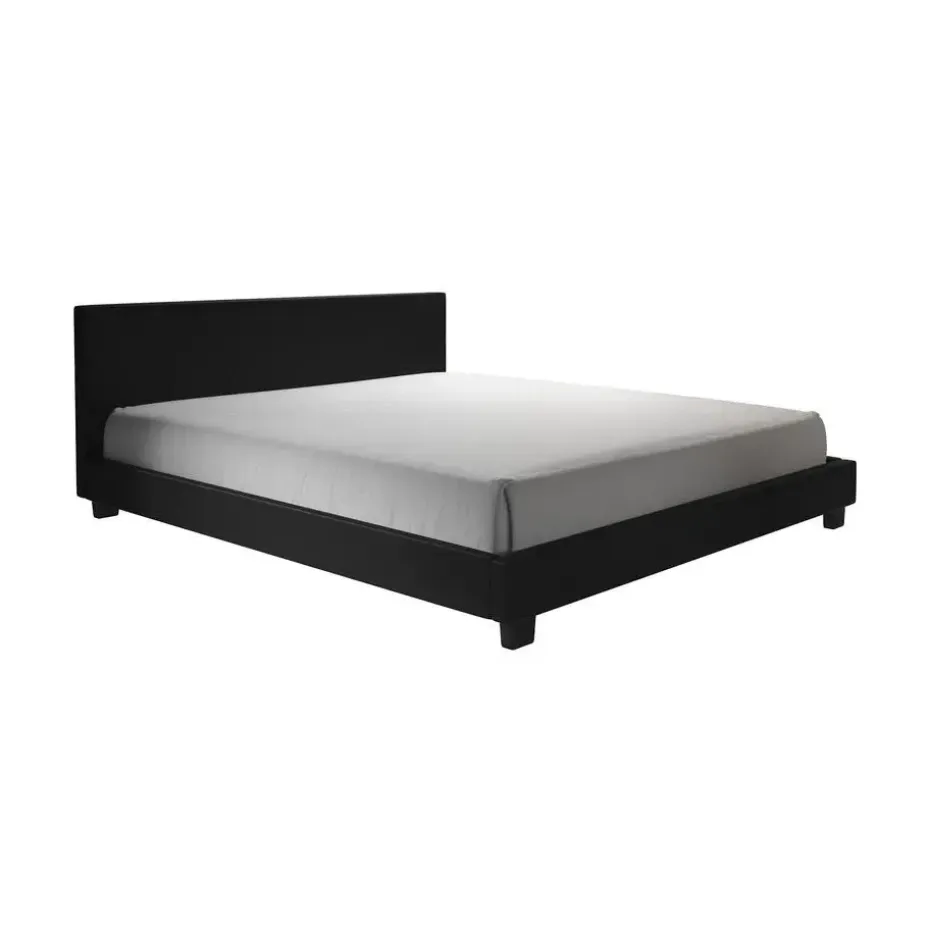Tweepersoonsbed George is gemaakt van stevig kunstleer in zwarte kleur. Het bed wordt met lattenbodem geleverd en is geschikt voor matrasmaat 180×200 cm. Inclusief hoofd- en voetenbord. Afmetingen: 189x210x78 cm. Het meubel wordt ongemonteerd geleverd. Je dient het dus met behulp van de bijgeleverde handleiding zelf in elkaar te zetten.