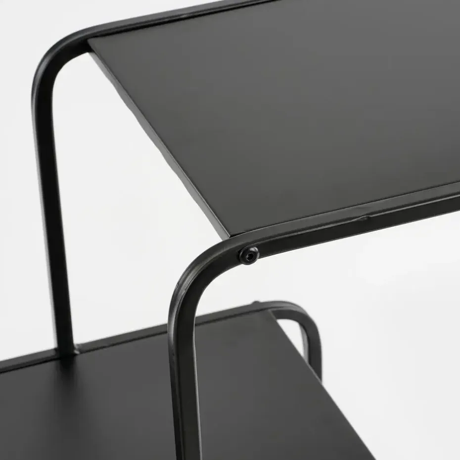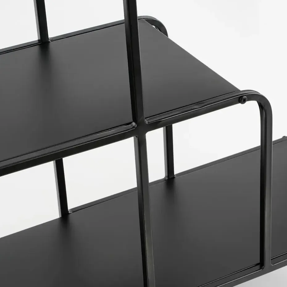 De Jules wandkast uit de collectie van Mica Decorations valt op door de drie tafelbladen in verschillende hoogtes die aan elkaar verbonden zijn.