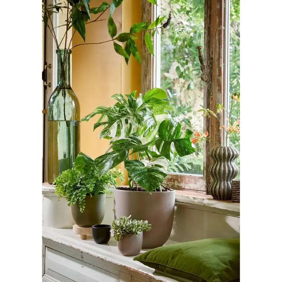 Plantenpot/bloempot van keramiek in de kleur zwart in strakke matte uitvoering. Diameter 31 cm en hoogte 28 cm. Mooie bloempotten voor binnen gebruik. Serie: Tusca. De bloempot met een prachtige mat finish aan de buitenzijde is van Duits keramiek. Tip: zet een schotel onder de pot, of plaats een binnenpot/hoes om eventueel lekken tegen te gaan. Potten van gebakken steen zijn niet altijd 100% waterdicht.
