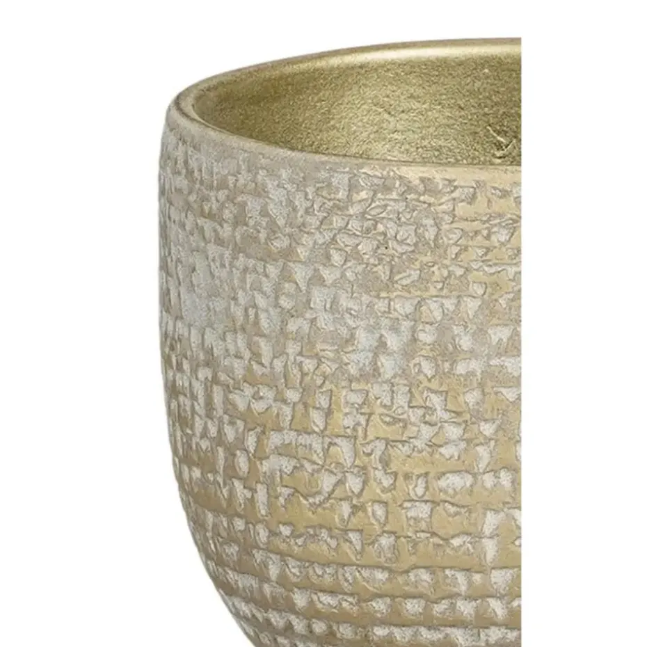 Plantenpot/bloempot van terracotta in de kleur champagne/wit met een modern relief flakes patroon. Diameter 16 cm en hoogte 14 cm. Stijlvolle bloempotten voor binnen gebruik. Serie: Carrie. De zeer mooie potten met prachtige buitenzijde zijn met de hand gemaakt in Portugal. Derhalve is geen pot exact hetzelfde en hebben de bloempotten een echt karakter. Materiaal: Terracotta. Tip: zet een schotel onder de pot om eventueel lekken tegen te gaan. Potten van steen zijn niet 100% waterdicht.
