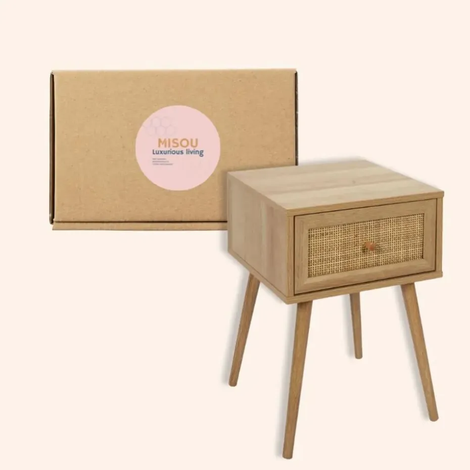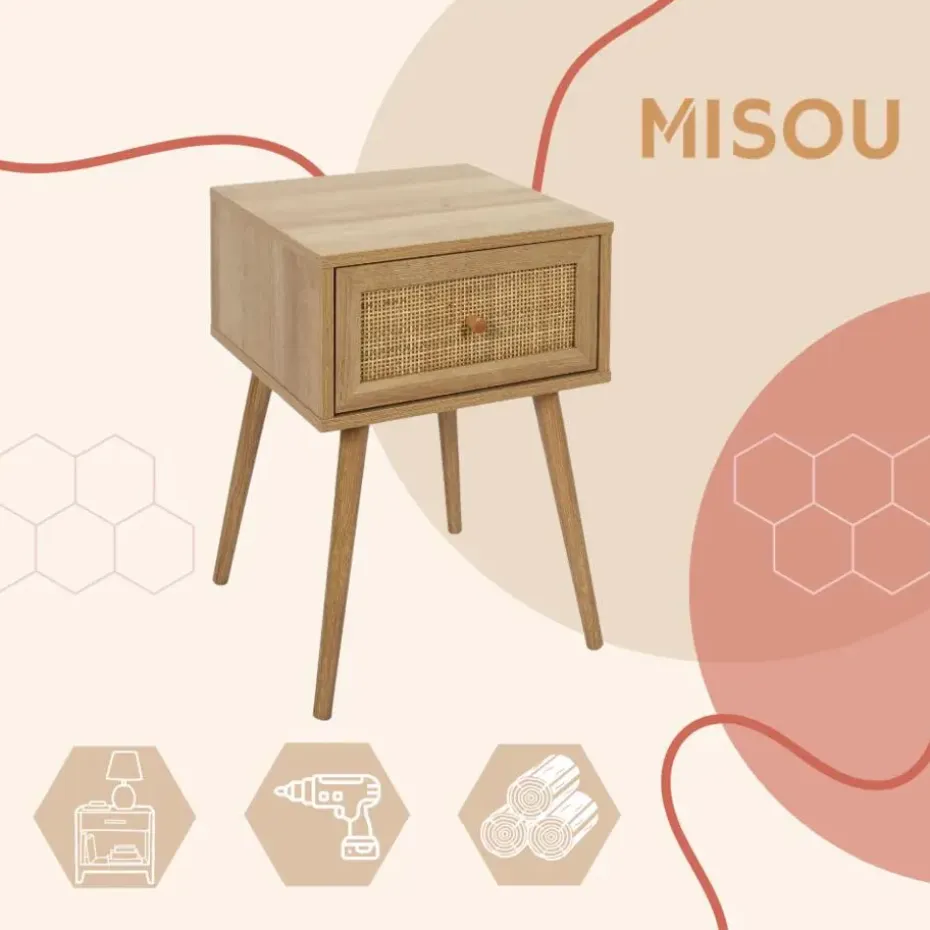 Voeg een vleugje natuurlijke elegantie toe aan je slaapkamer met de MISOU Nachtkastjes met Lade, vervaardigd van rotan webbing en hout. Deze nachtkastjes combineren functionaliteit met een eigentijds design, waardoor ze perfect zijn voor het opbergen van je essentials naast je bed.