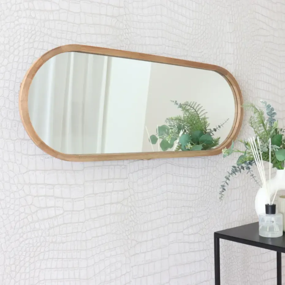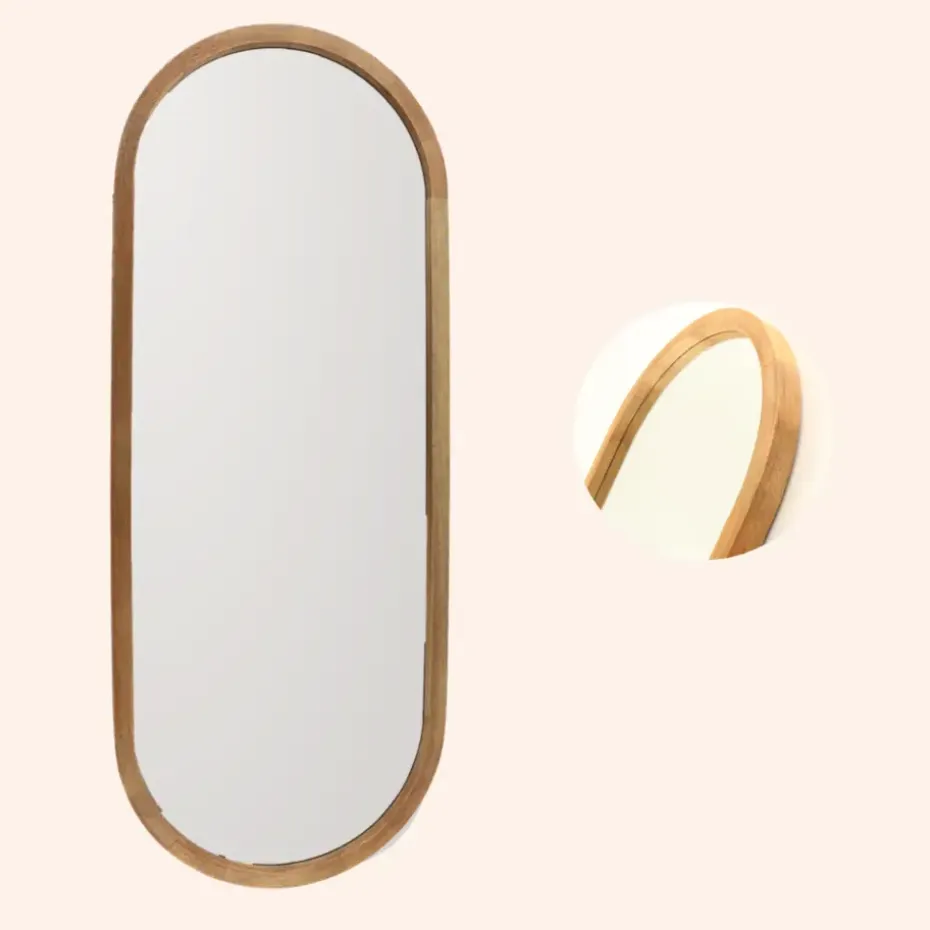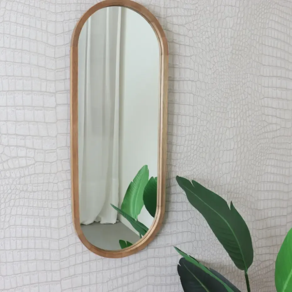 Voeg een vleugje elegantie en functionaliteit toe aan je interieur met de MISOU Hangende Passpiegel. Met zijn sierlijke ovale vorm en houten randen is deze passpiegel zowel een decoratieve als praktische toevoeging aan elke kamer. Met afmetingen van 35 x 90 cm biedt deze passpiegel een ruimtelijk overzicht.