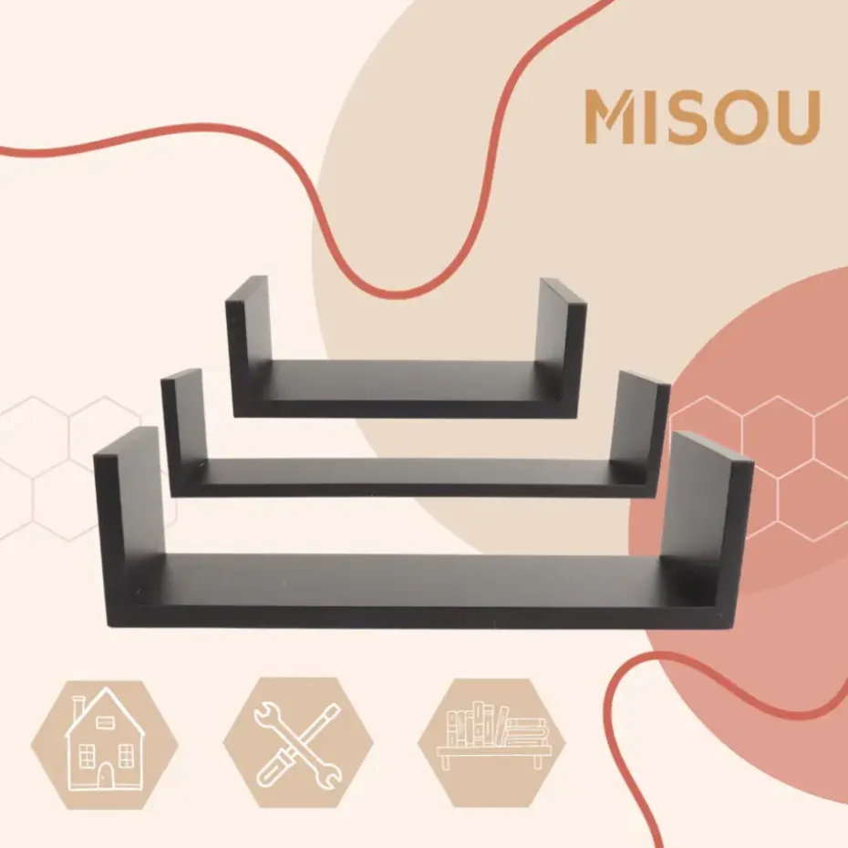 Deze zwarte wandplanken van MISOU zijn perfect om in je woonkamer of keuken te hangen. Je kunt hier dan decoratiestukken of planten op plaatsen. De planken hebben een simplistische uitstraling en passen in een modern interieur. De set bestaat uit 3 planken met elk een verschillende afmeting. Zo heb je dus een kleine, middelgrote en grote plank.
