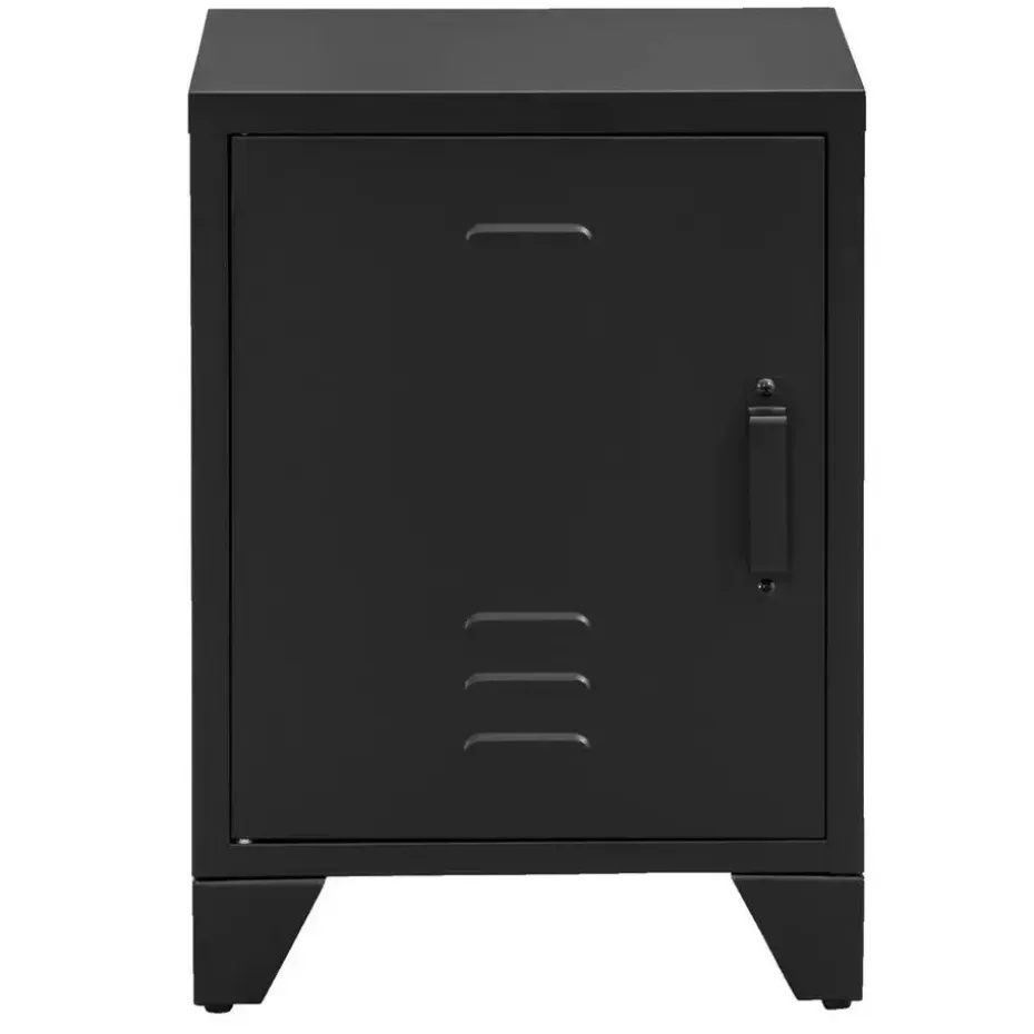 Nachtkastje Mick is strak vormgegeven met een industriële look en gemaakt van metaal in de kleur antraciet. Het nachtkastje heeft 1 deurtje en aan de binnenkant 1 plankje waardoor je handig wat spulletjes kan opbergen. Combineer dit kastje met de lockerkast Mick voor een ultiem resultaat!