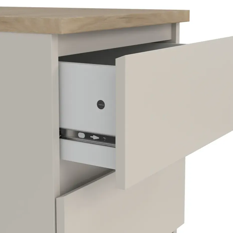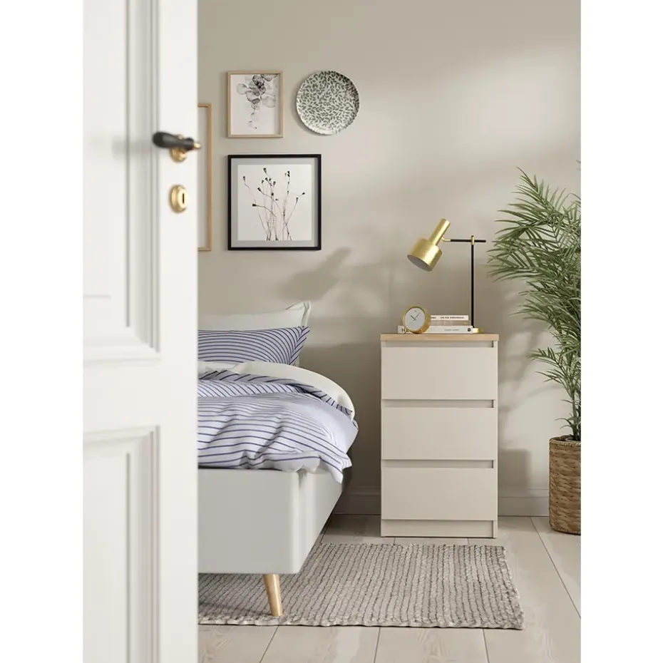 Nachtkastje Naia is het ideale meubel voor naast je bed en heeft een mooie greige kleur. Zet er een nachtlampje op en gebruik de opbergruimte voor je favoriete boeken en tijdschriften. Dit meubel is gemaakt van spaanplaat.