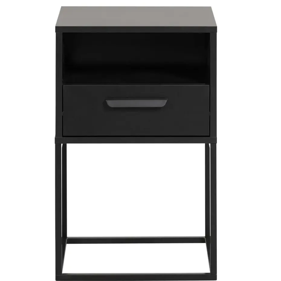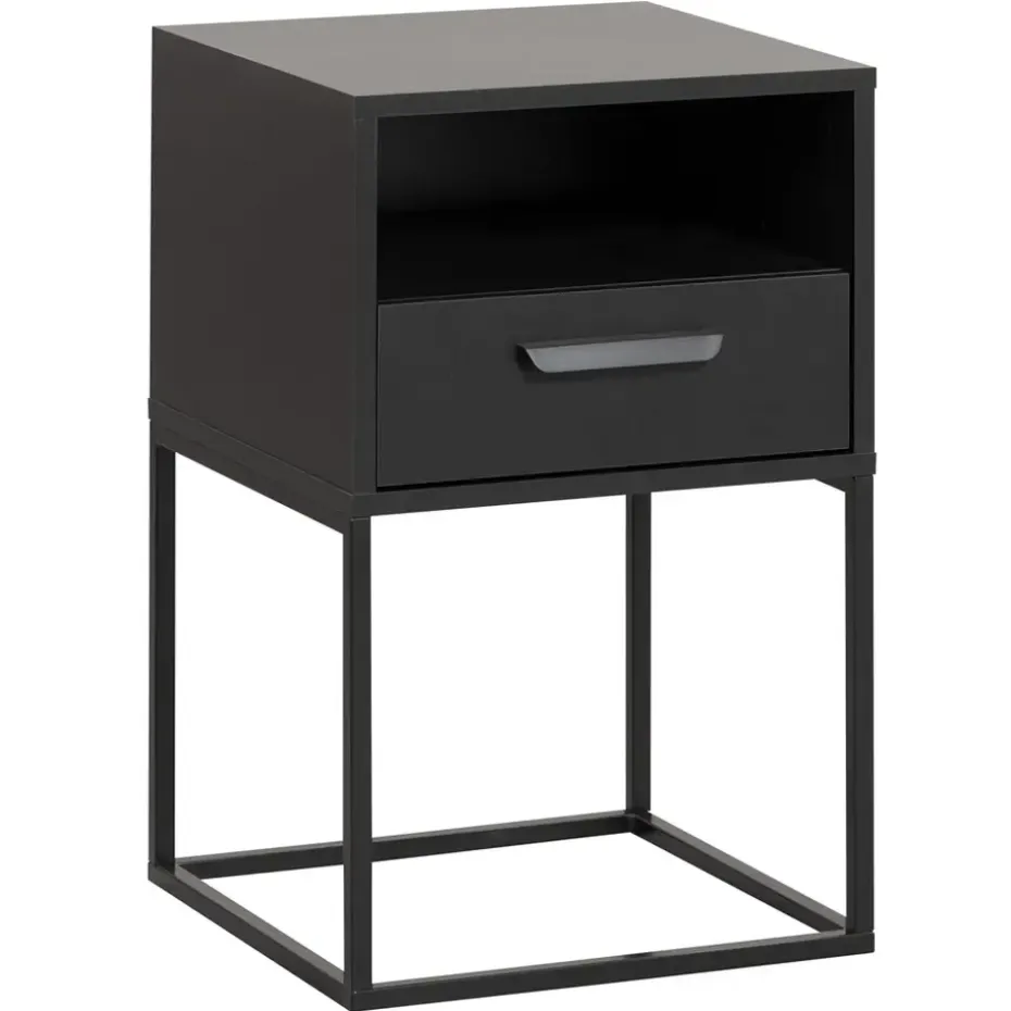 Nachtkastje Tokio is een echte toevoeging aan jouw slaapkamer. Het nachtkastje is zwart van kleur. Ideaal voor een industriële & neutrale look in de slaapkamer. De lade en het vak zorgen voor opbergruimte en hebben een strakke uitstraling door de zwarte greep. Bovenop en/of in het kastje heb je voldoende ruimte voor een wekker, je telefoon en een boek. Nachtkastje Tokio heeft een afmeting van 65x40x39cm (hxbxd).