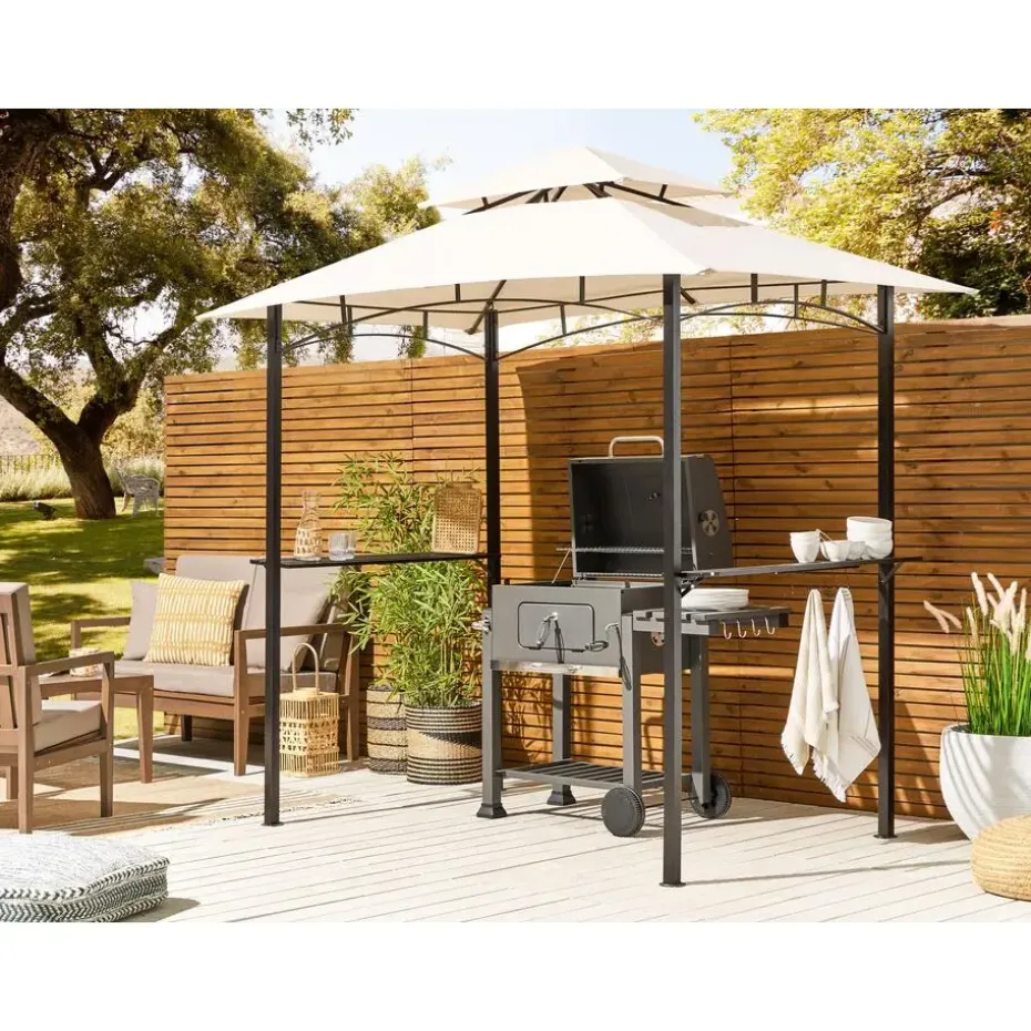 Extra informatie: Om veiligheidsredenen moet het paviljoen aan de grond worden vastgezet. De set bevat metalen haringen om het stuk op het gazon te bevestigen, maar het bevestigingsmateriaal voor andere oppervlakken is niet inbegrepen.